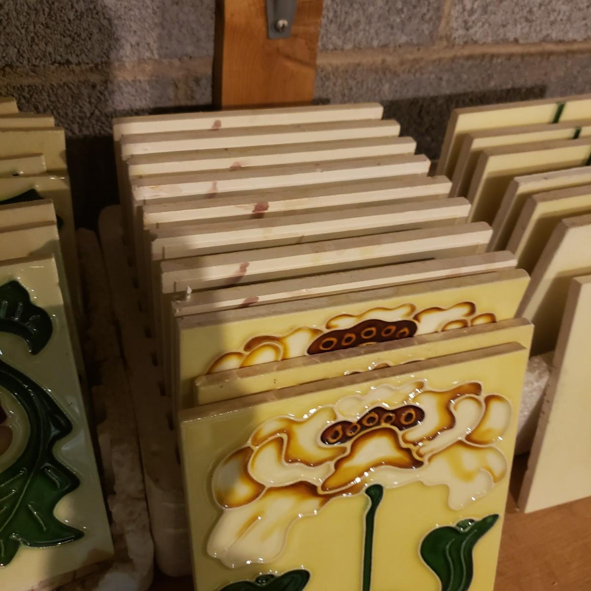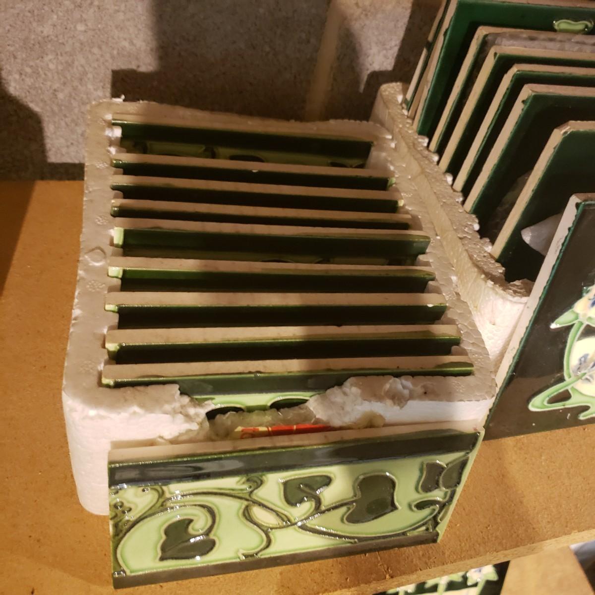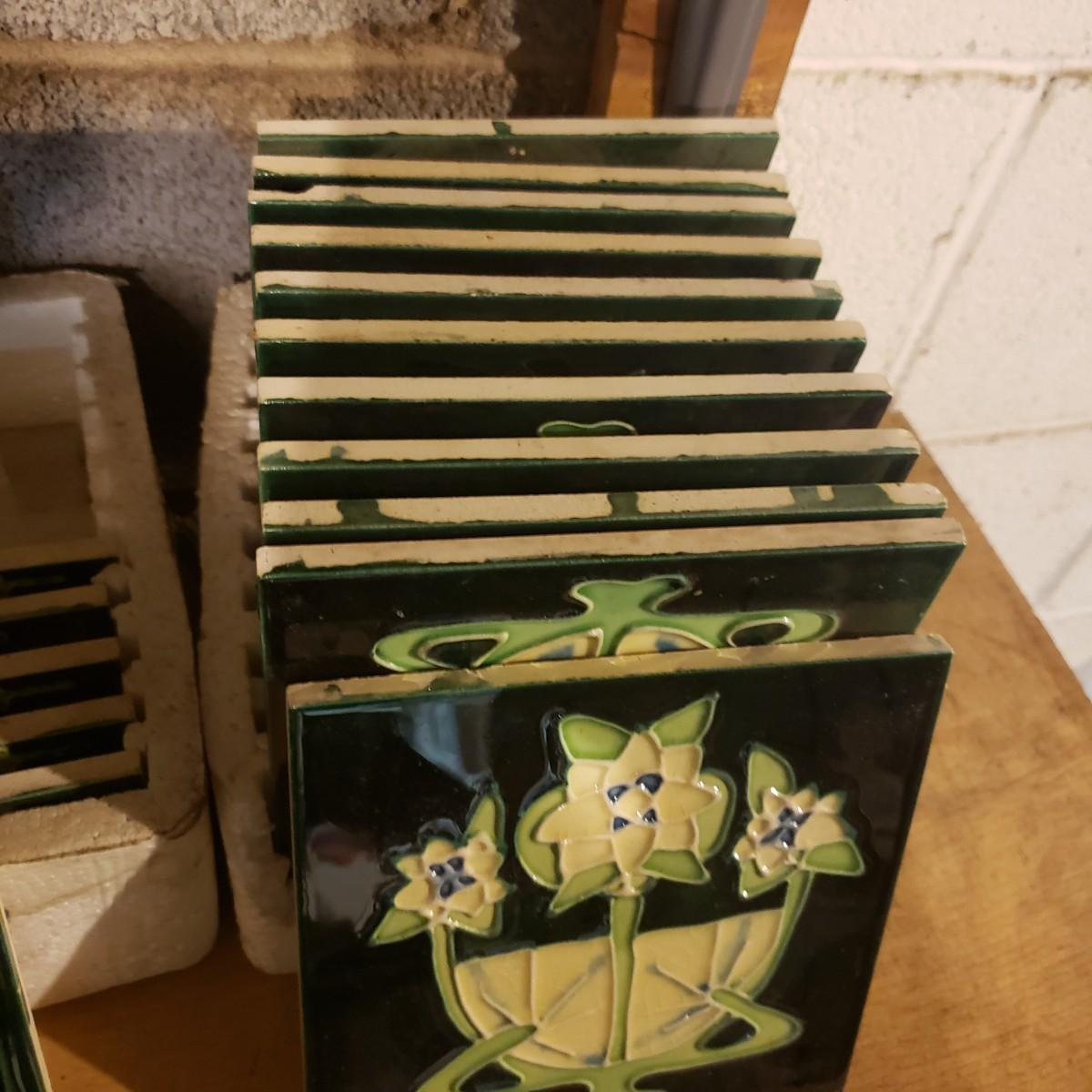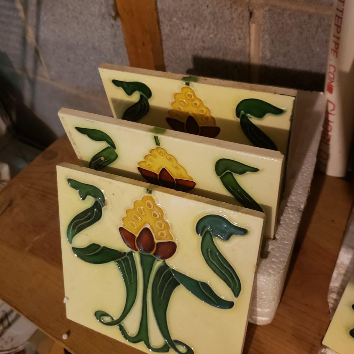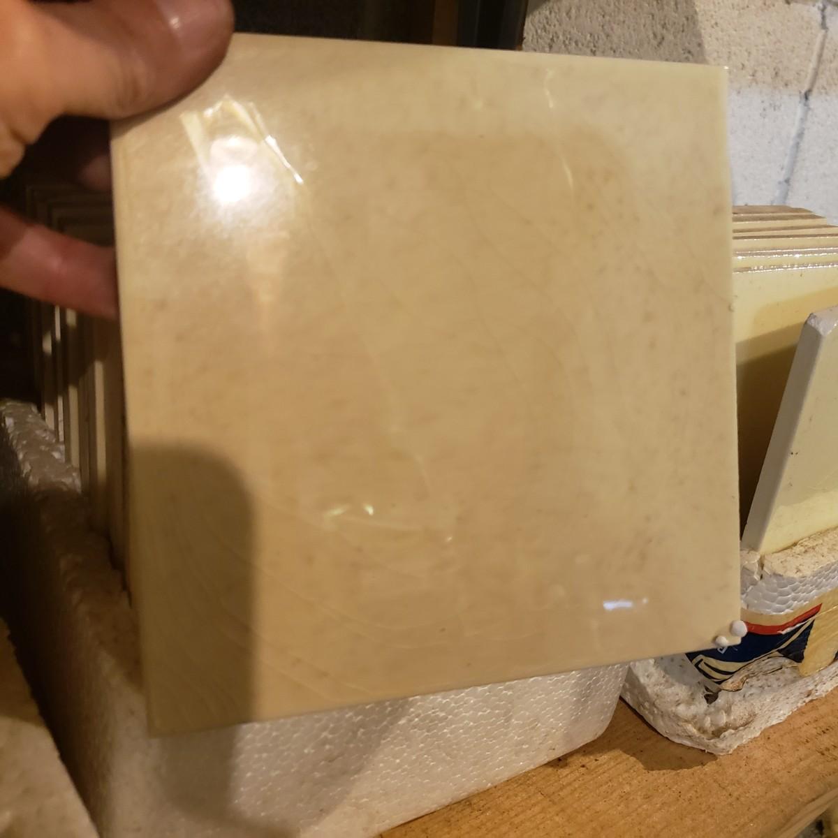 These beautiful Neatco tiles are exquisite! The tiles with patterns have a textured feel to them. The tiles measure 6" x 6". The smaller trim pieces measure 3" x 6". The solid colored tiles are smooth to the touch. See pictures for quantities of each style.