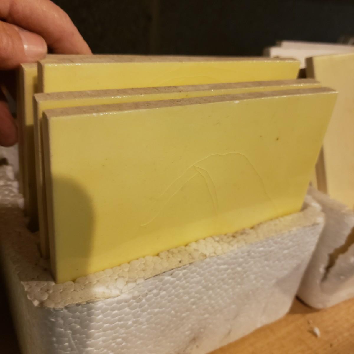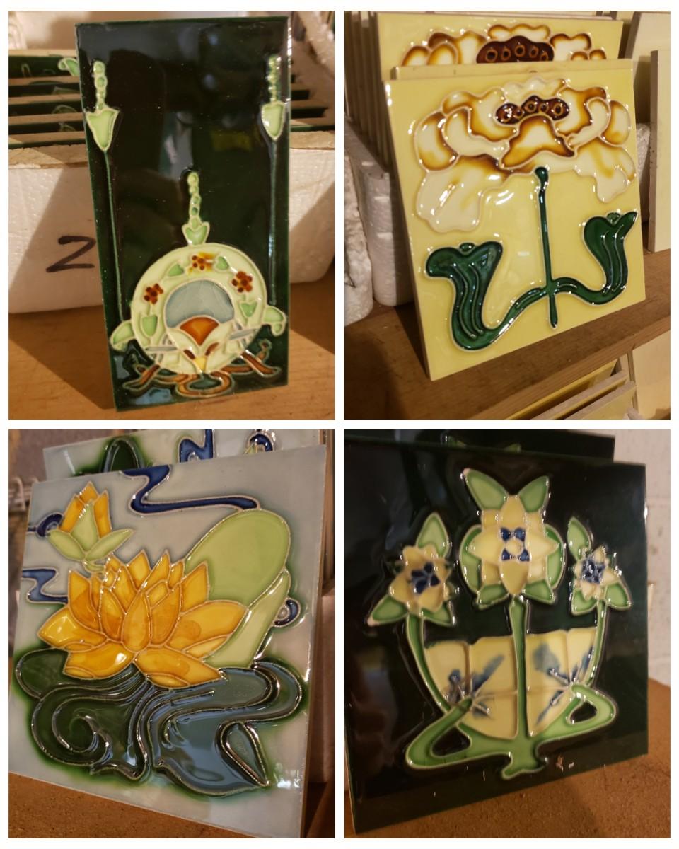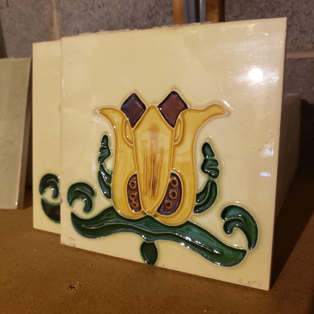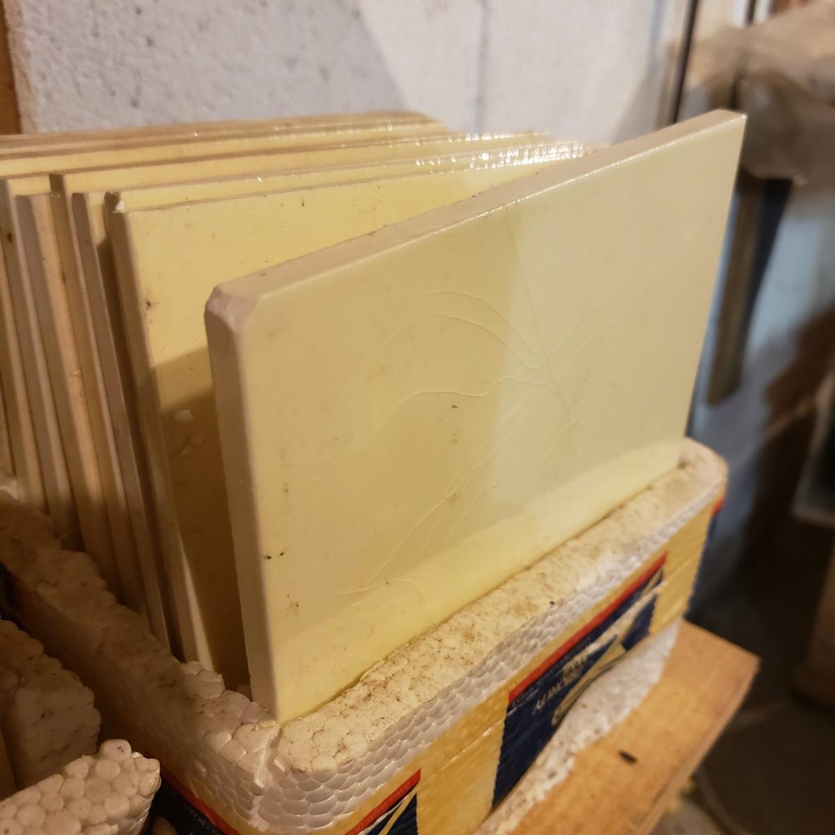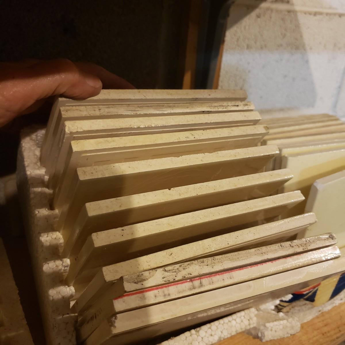 These beautiful Neatco tiles are exquisite! The tiles with patterns have a textured feel to them. The tiles measure 6" x 6". The smaller trim pieces measure 3" x 6". The solid colored tiles are smooth to the touch. See pictures for quantities of each style.