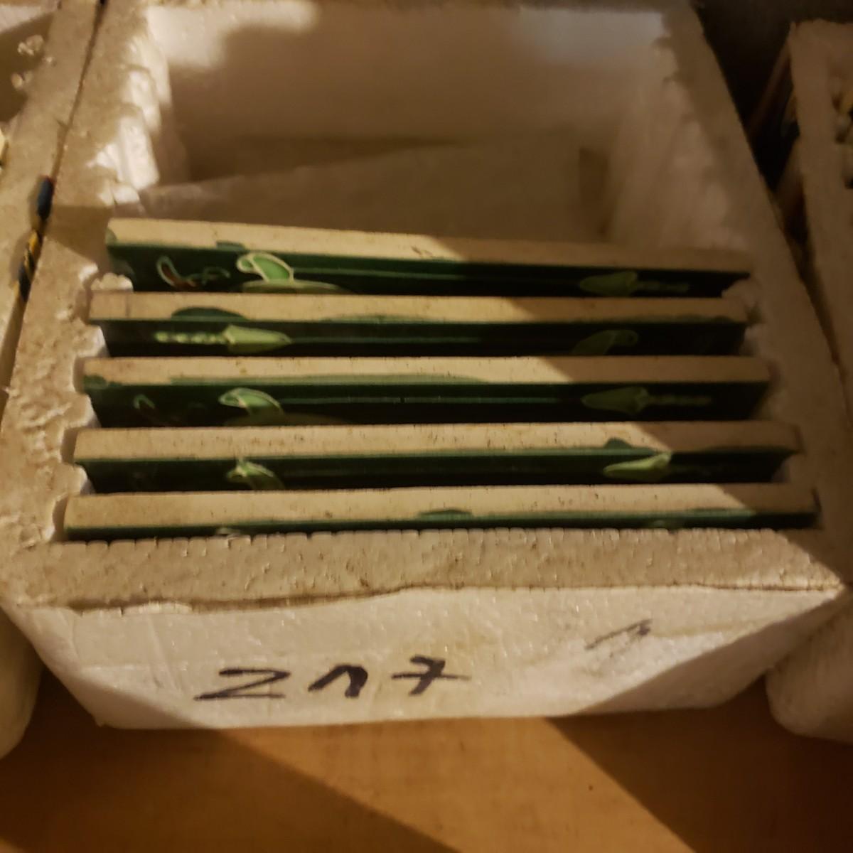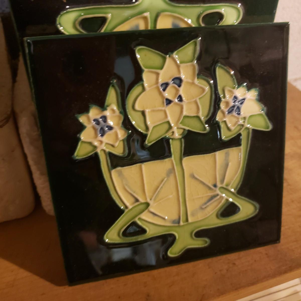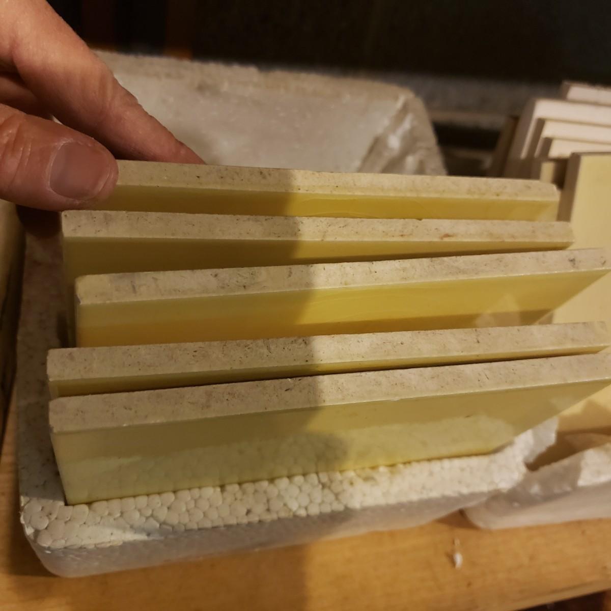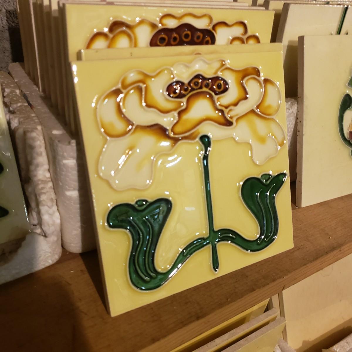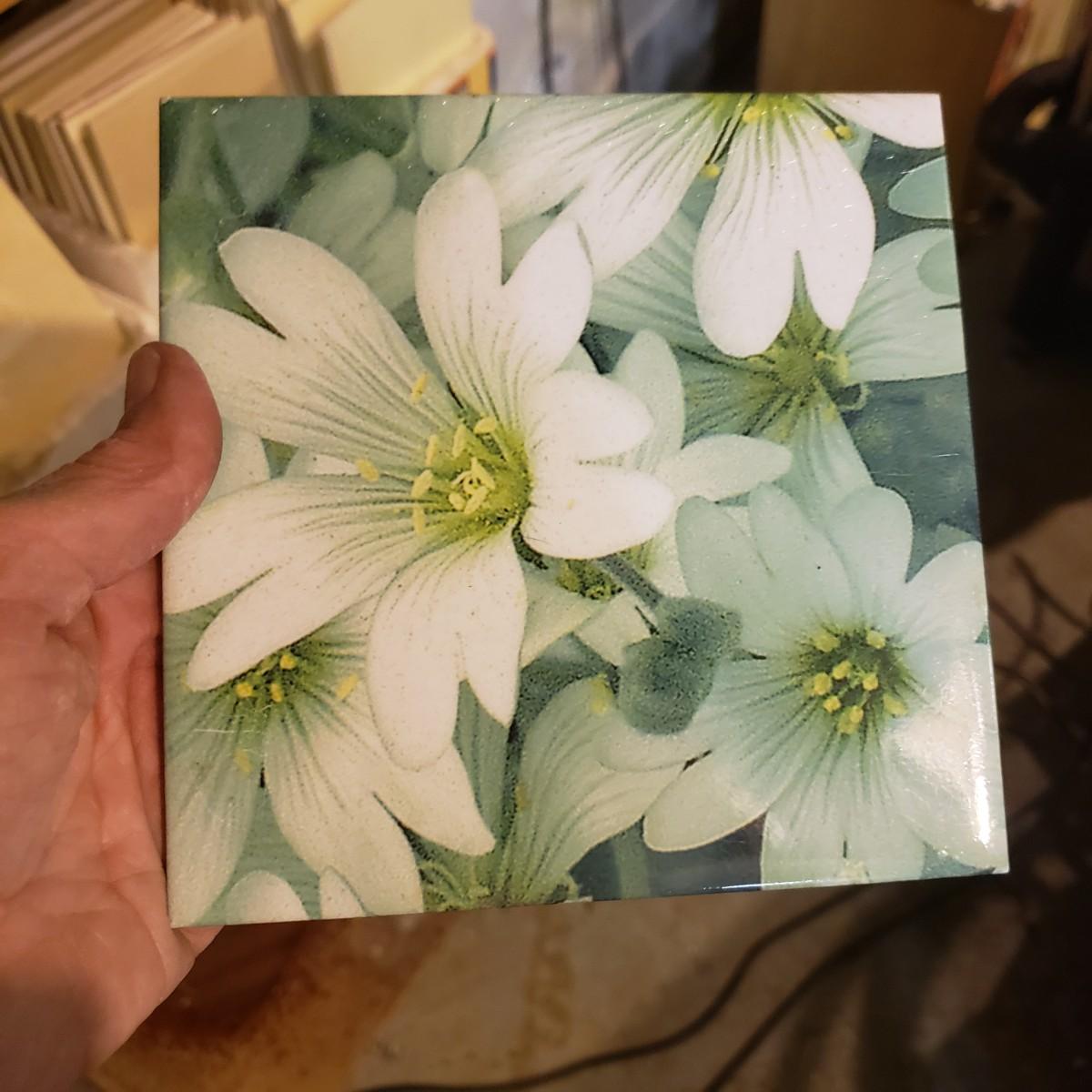 These beautiful Neatco tiles are exquisite! The tiles with patterns have a textured feel to them. The tiles measure 6" x 6". The smaller trim pieces measure 3" x 6". The solid colored tiles are smooth to the touch. See pictures for quantities of each style.