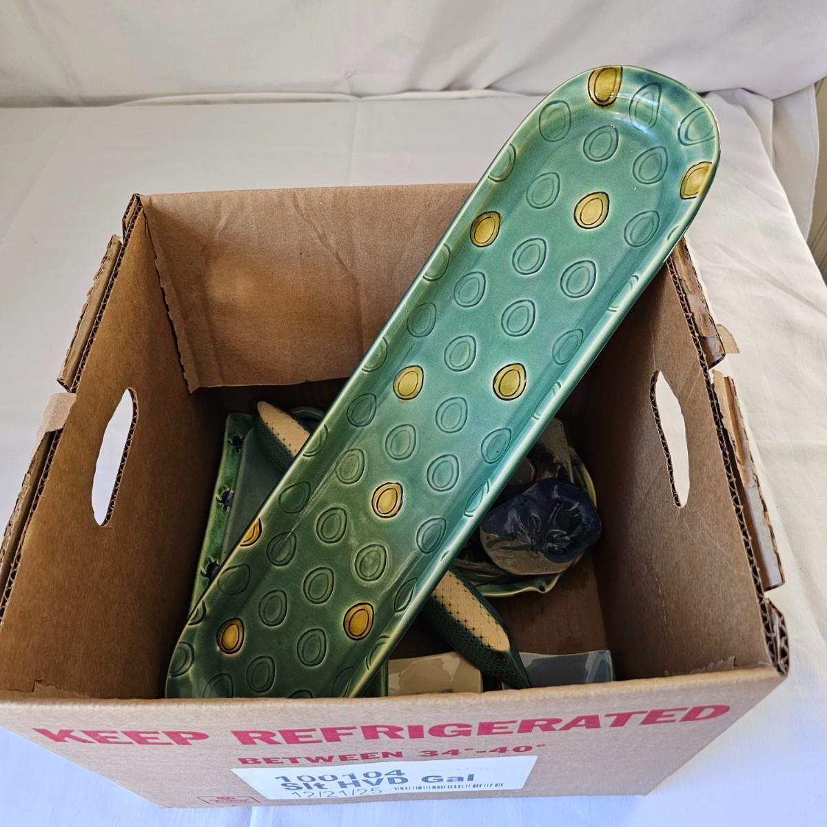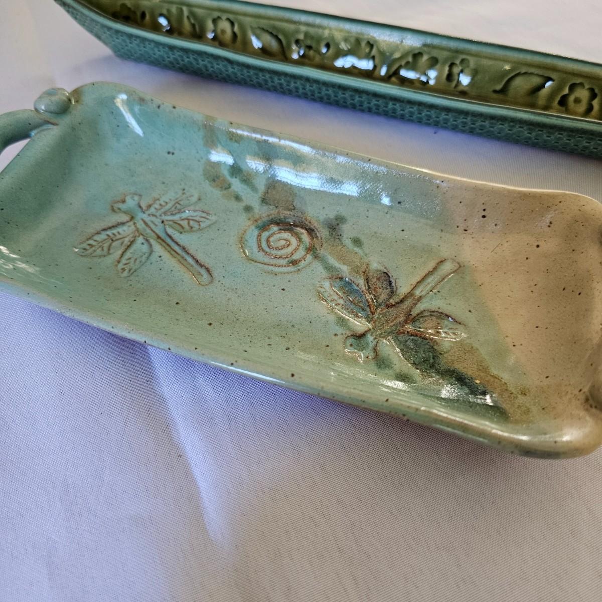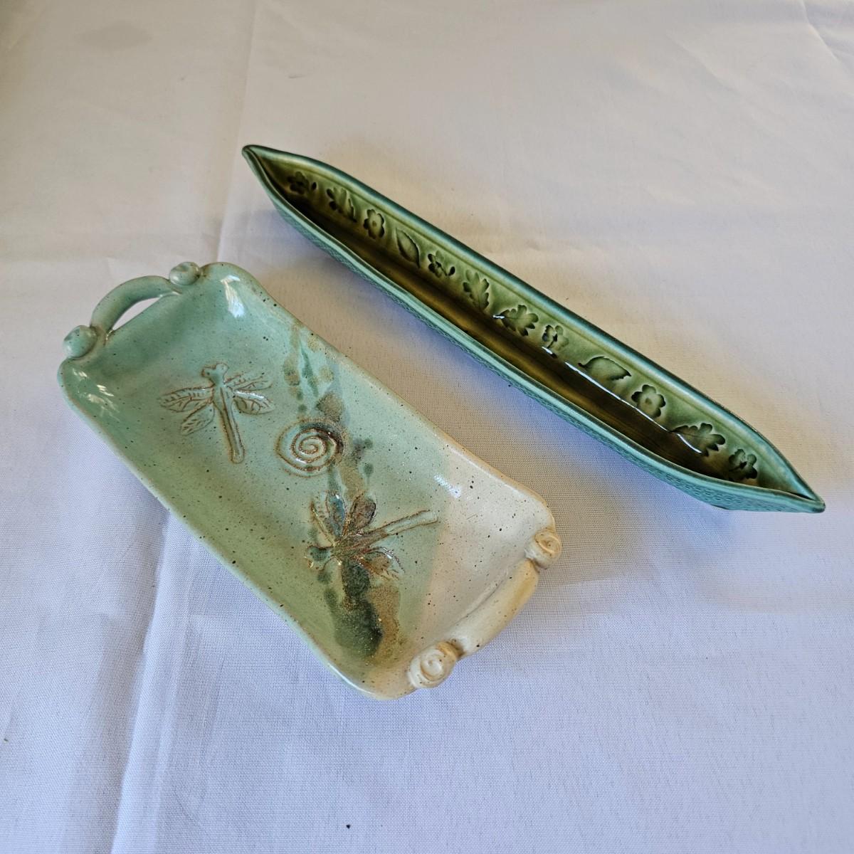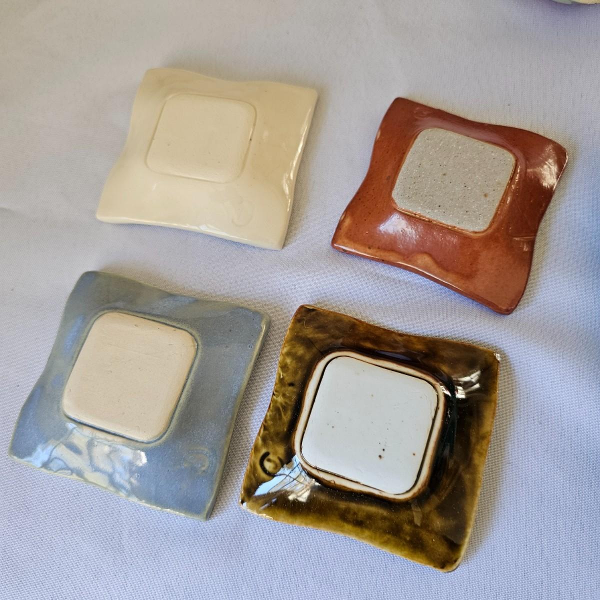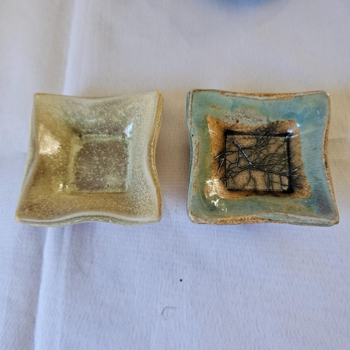 Squares, rounds, oblong. Fun, whimsical decorations and shapes to spice up your table. Longest piece is 19.5" x 5", turtle design plate is 12" x 5.5". Small squares with varying designs are 3" x 3" x 1"H. See photos for details. Shipping available.