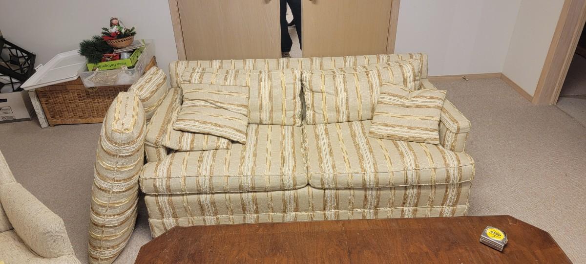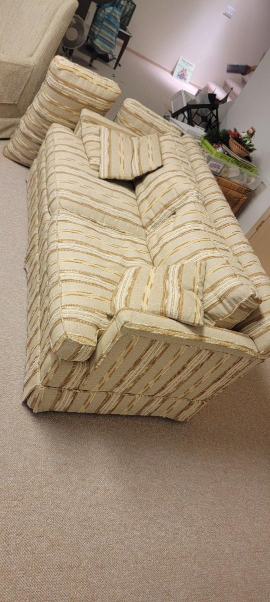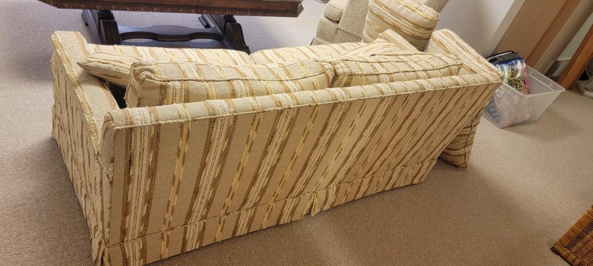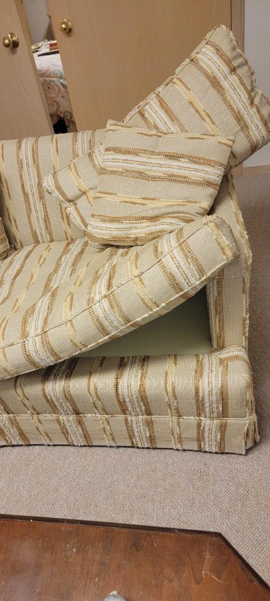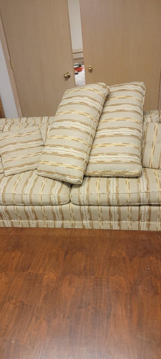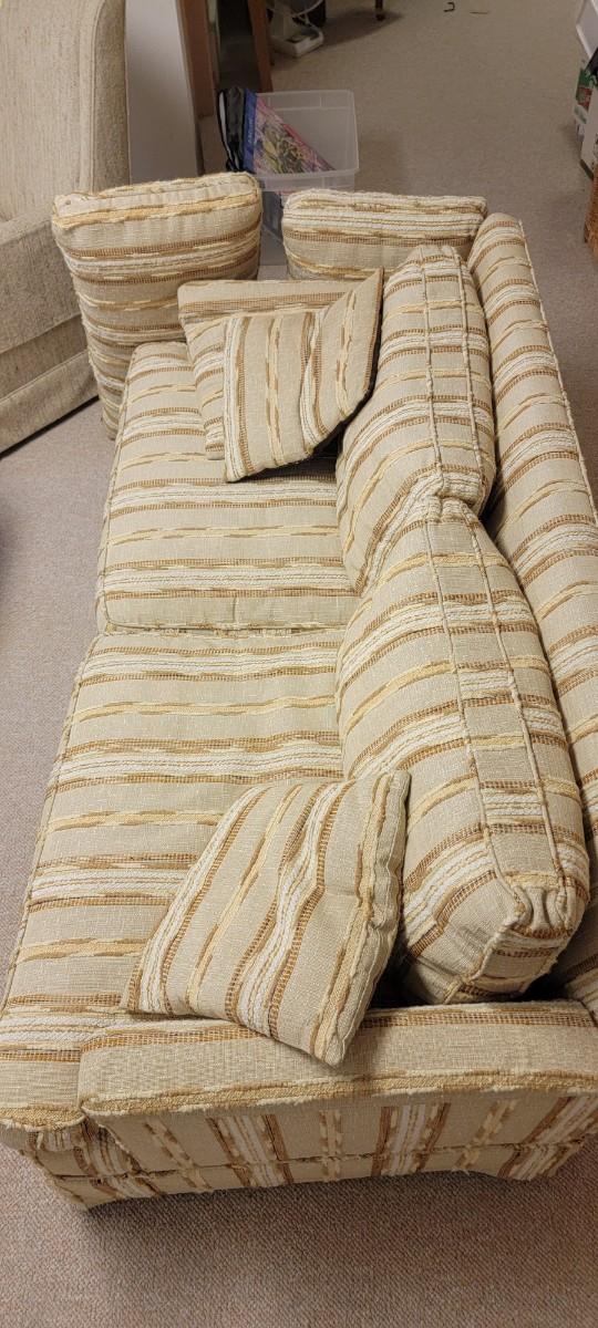 Textured upholstered sofa. Extra cushions for fabric 33" x 65" x 17" H front 28" H back