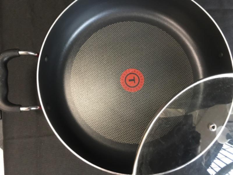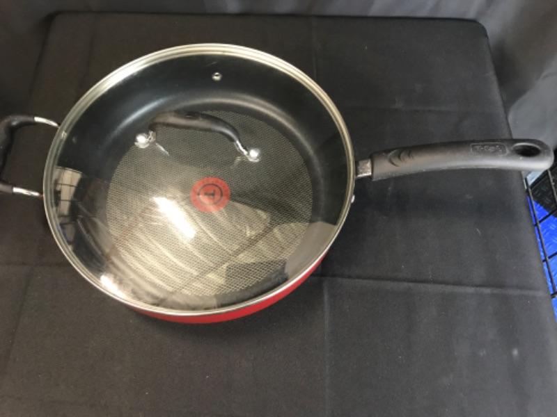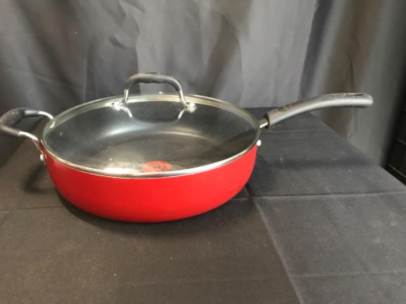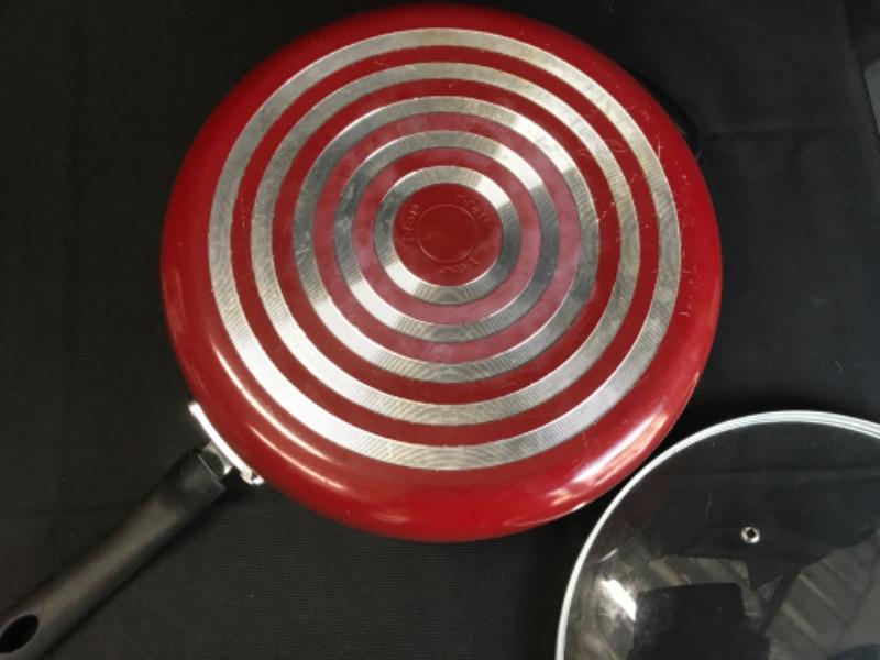 T-fal 12” dia. Frying pan with glass lid, red
