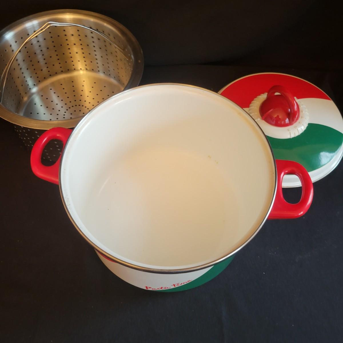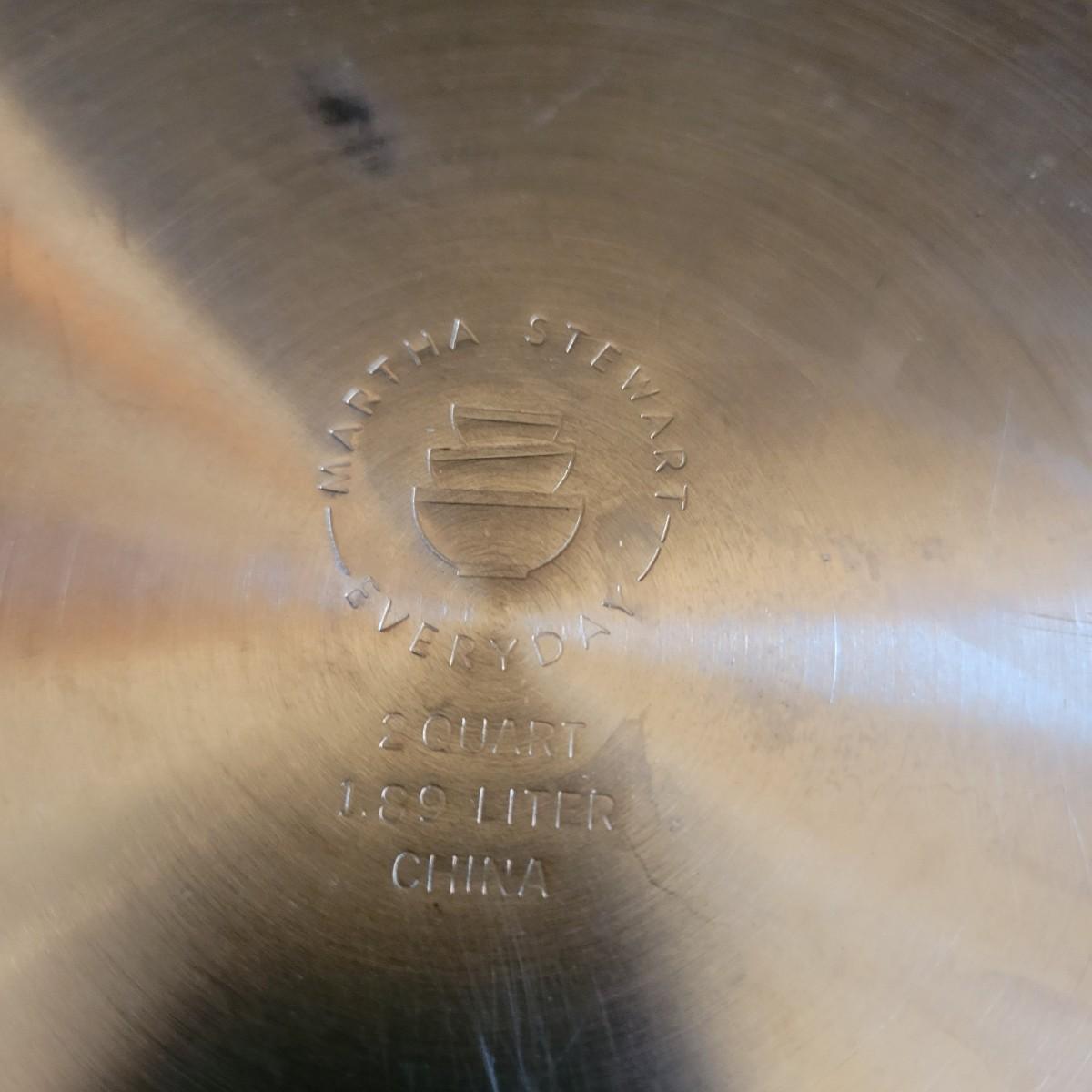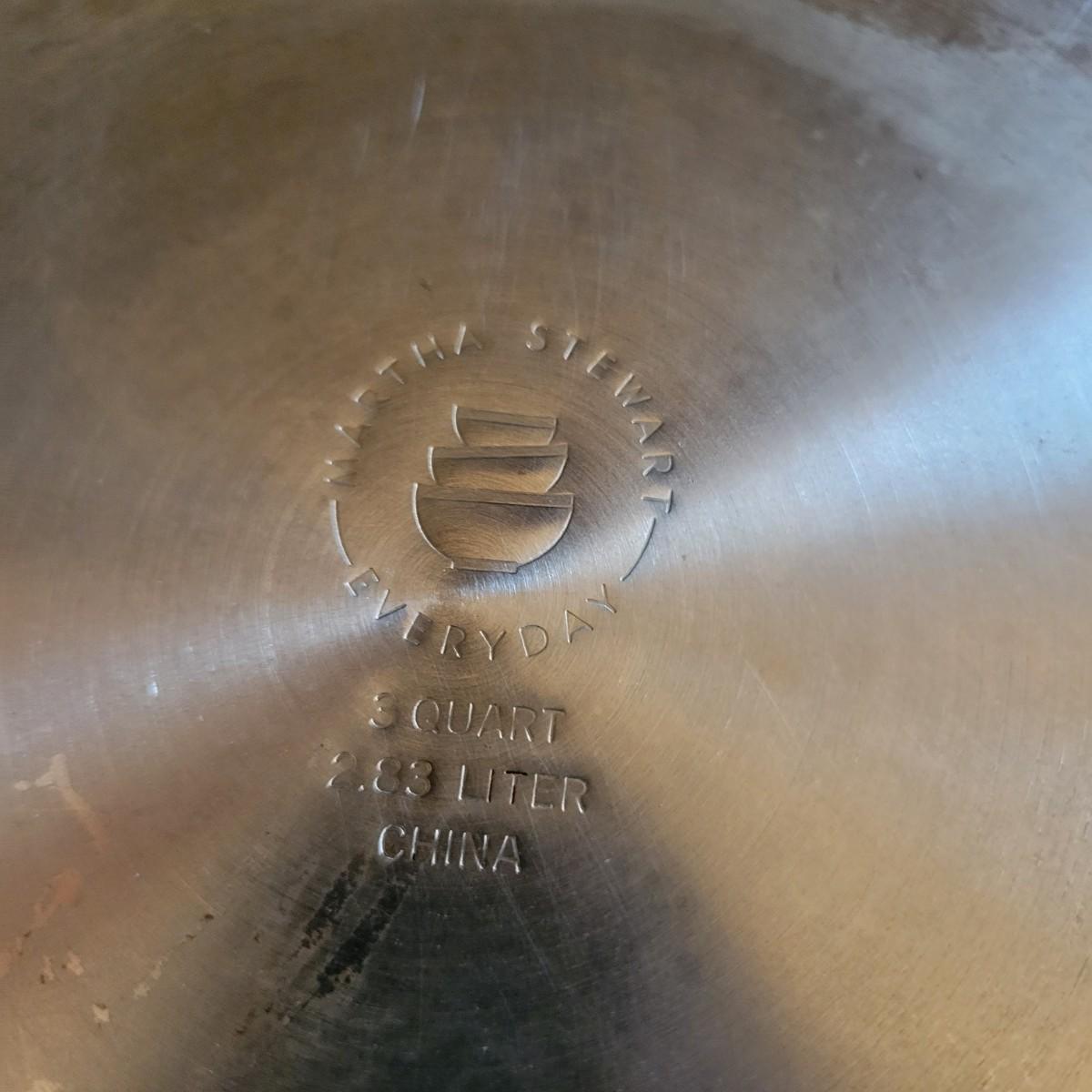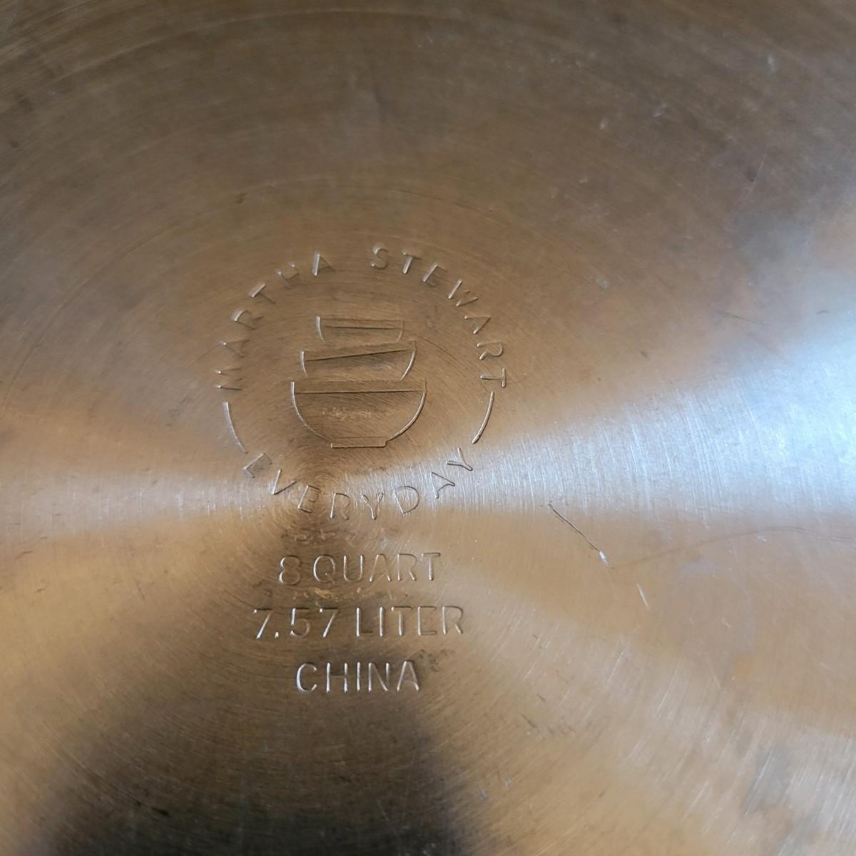 An assortment of pots and pans manufactured by T-Fal, Martha Stewart and Farberware. Included in this lot are four frying pans, three sauce pots and three larger pots. The T-Fal pieces are induction copper clad pots and pans. The pasta time pot includes a nesting strainer, but the timer on the lid does not appear to work. The large non stick pan measures approximately 12"D x 3"H. Local pickup only