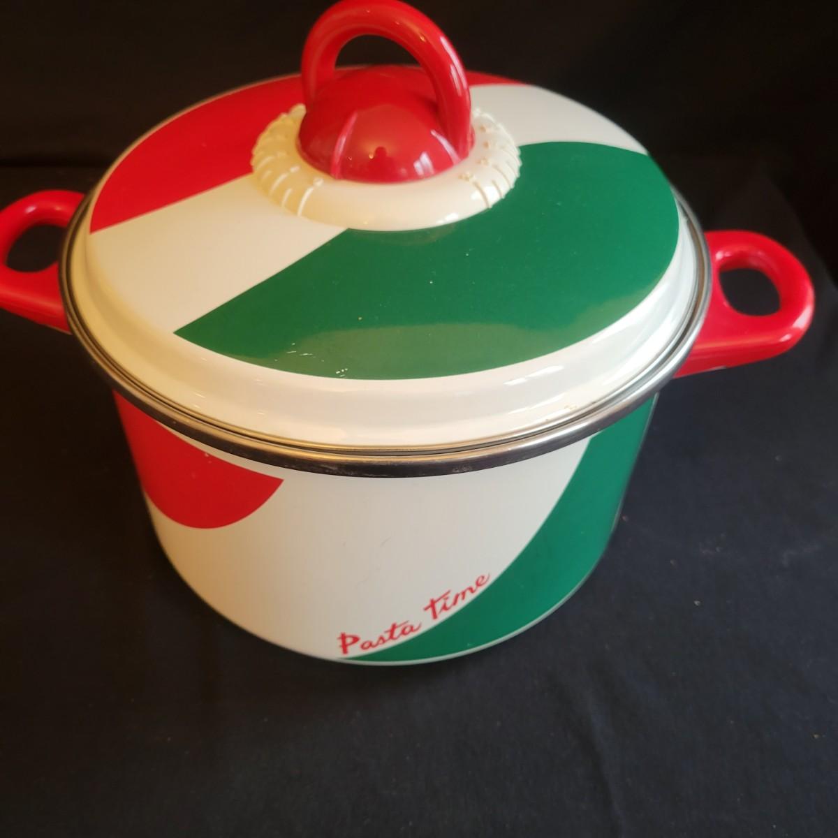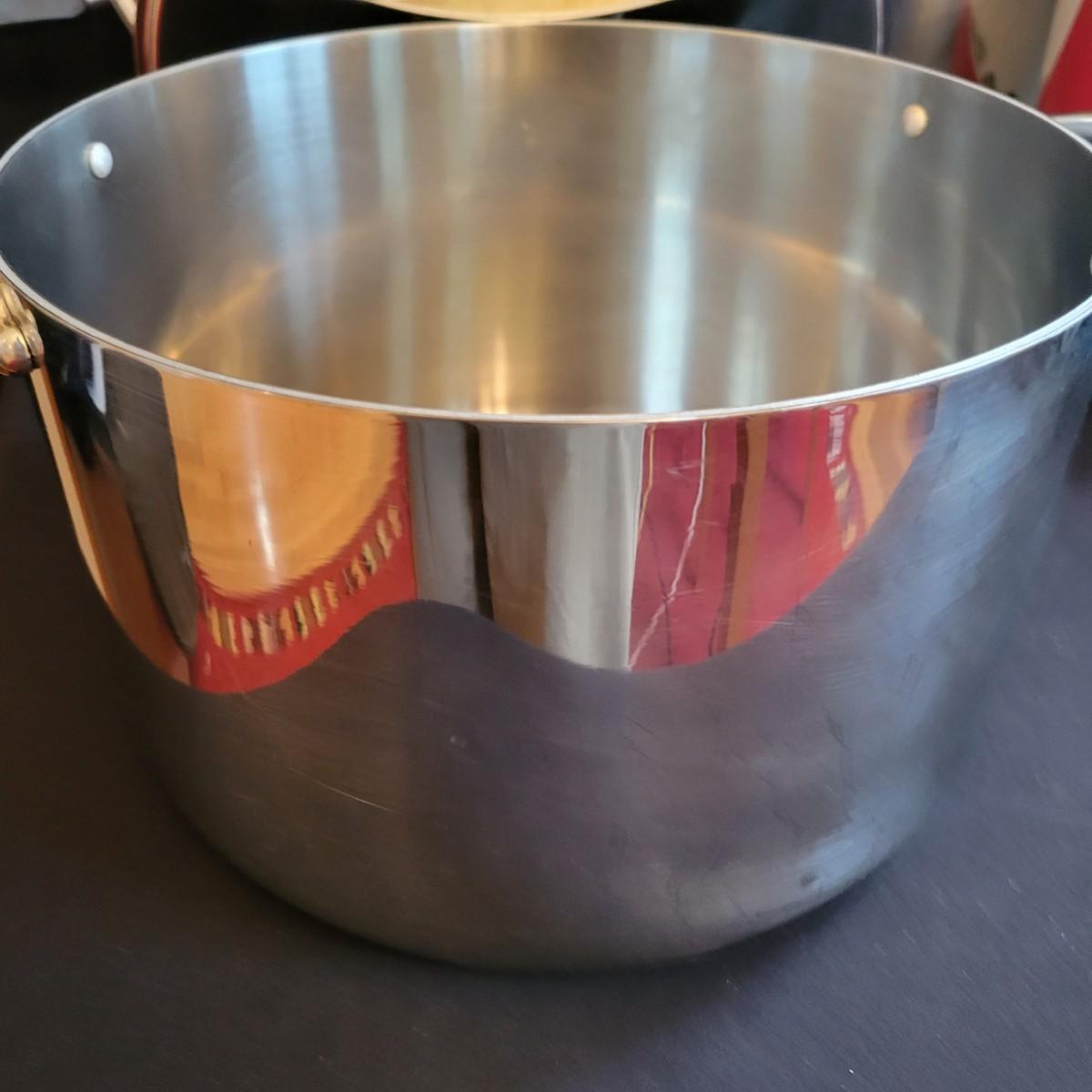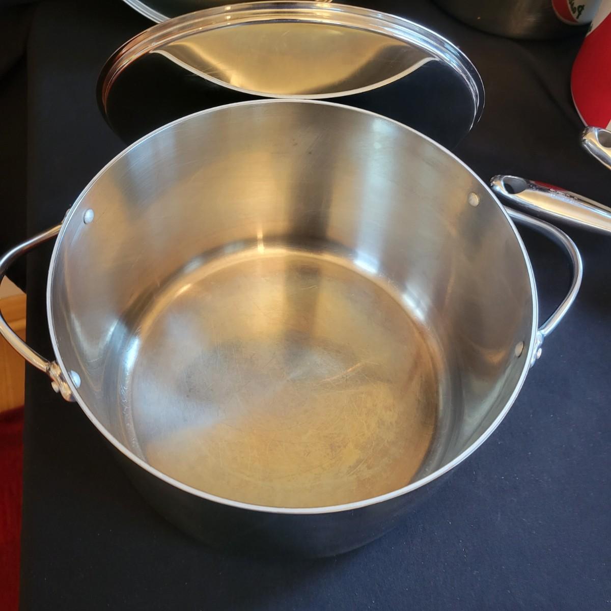 An assortment of pots and pans manufactured by T-Fal, Martha Stewart and Farberware. Included in this lot are four frying pans, three sauce pots and three larger pots. The T-Fal pieces are induction copper clad pots and pans. The pasta time pot includes a nesting strainer, but the timer on the lid does not appear to work. The large non stick pan measures approximately 12"D x 3"H. Local pickup only