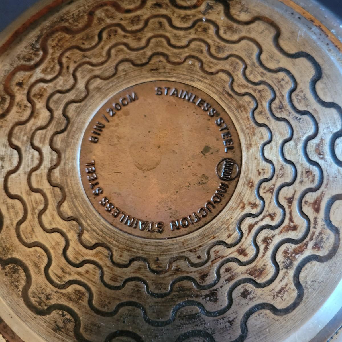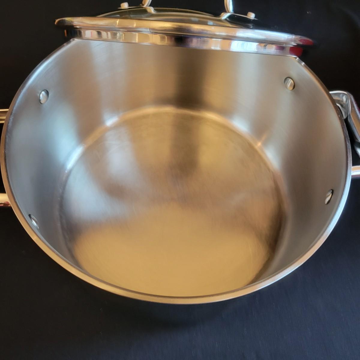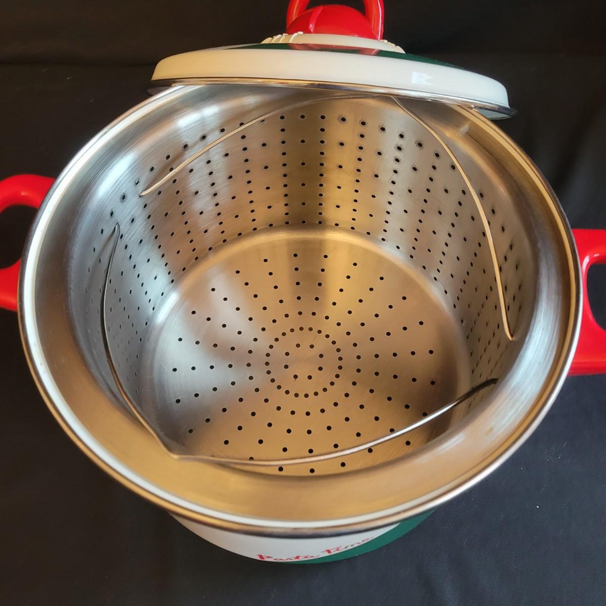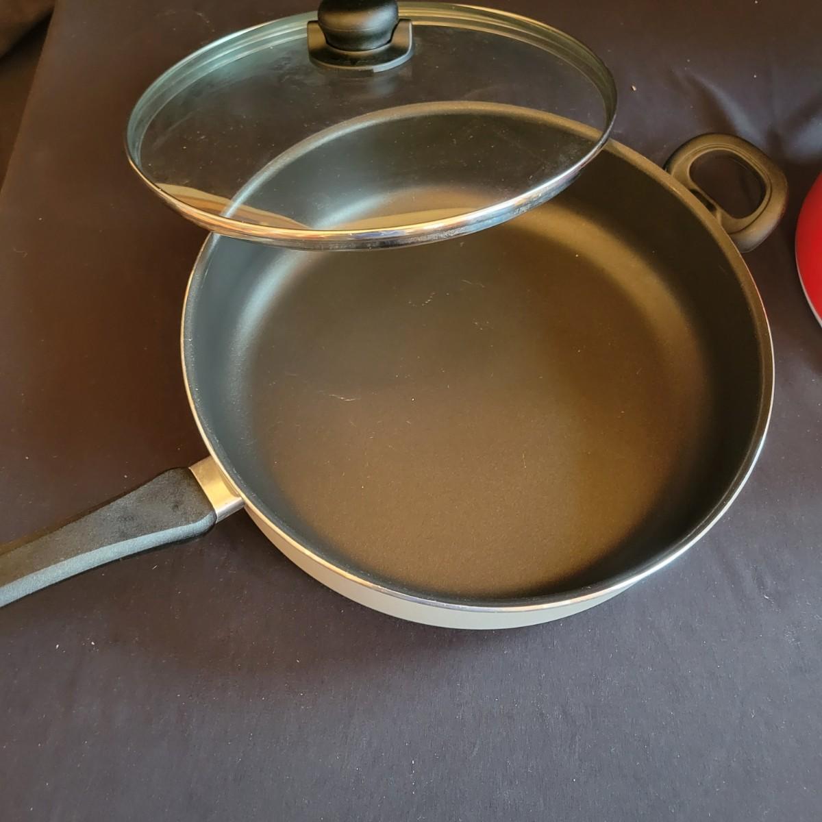 An assortment of pots and pans manufactured by T-Fal, Martha Stewart and Farberware. Included in this lot are four frying pans, three sauce pots and three larger pots. The T-Fal pieces are induction copper clad pots and pans. The pasta time pot includes a nesting strainer, but the timer on the lid does not appear to work. The large non stick pan measures approximately 12"D x 3"H. Local pickup only