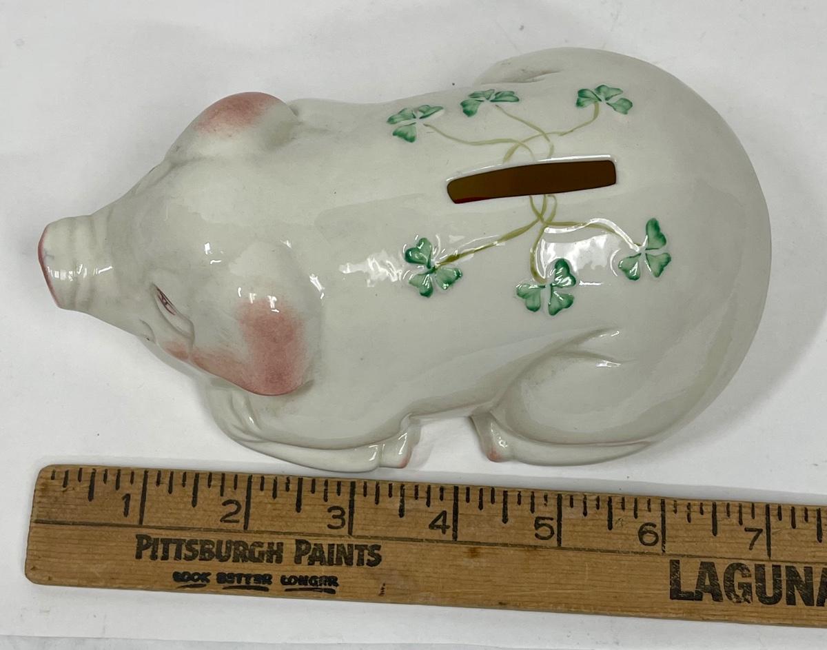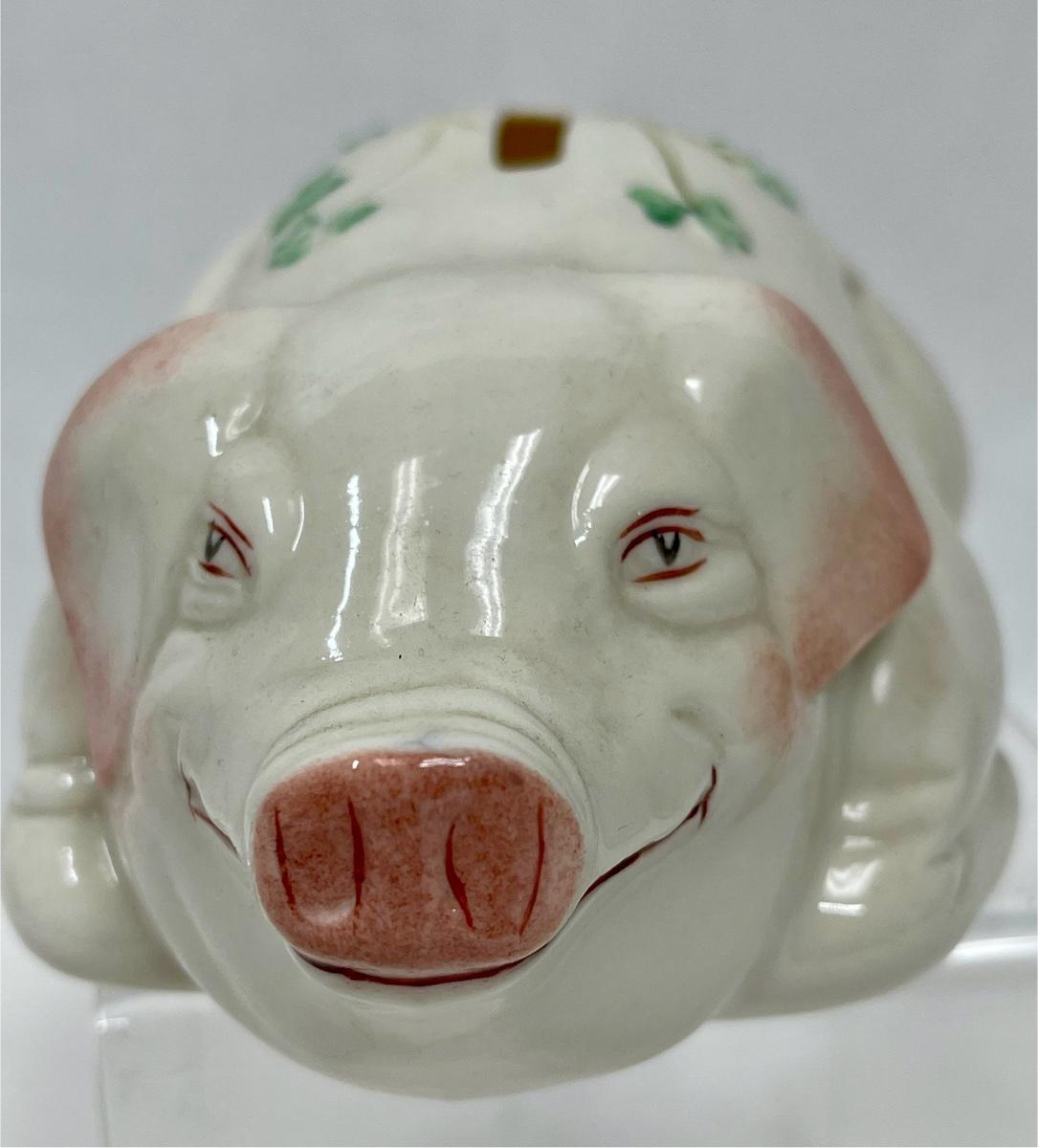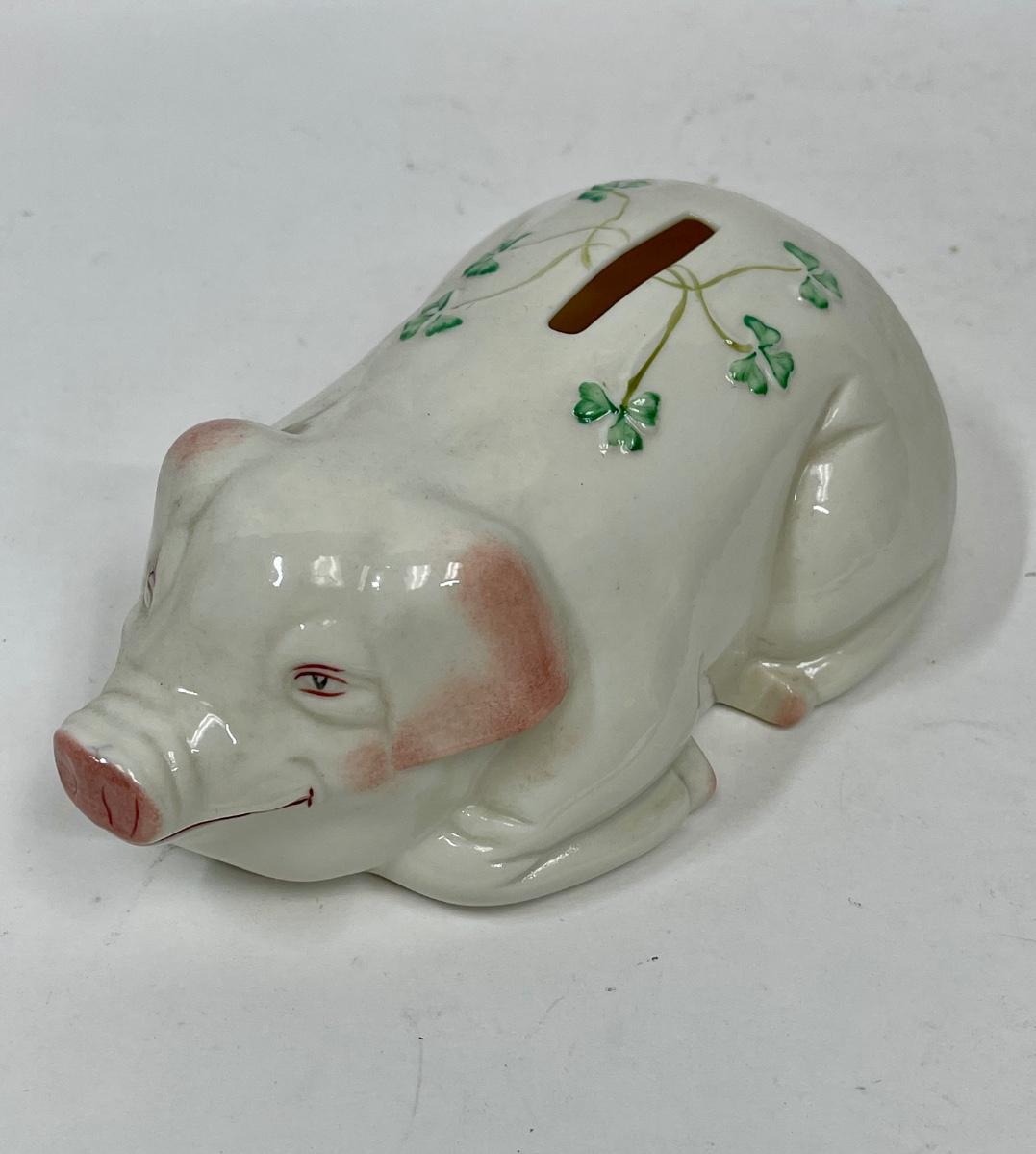 1972 Belleek Irish Pottery Piggy Bank With Shamrocks