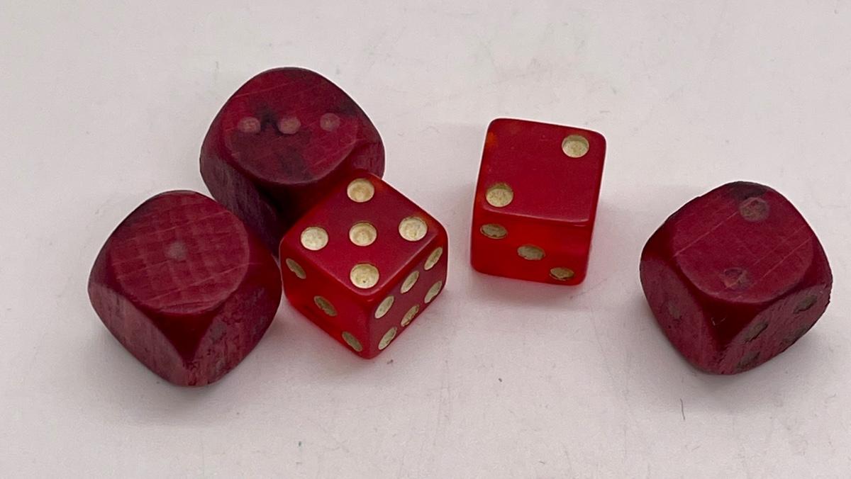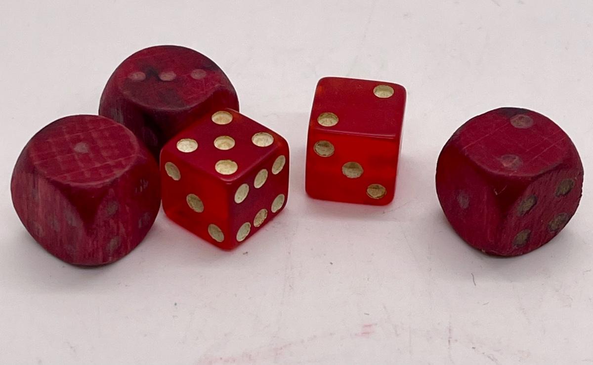 5 Vintage Dice, red