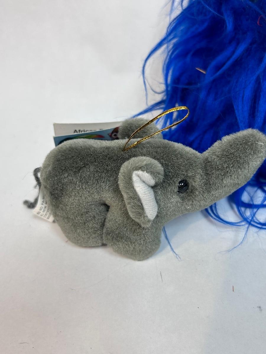Mixed Plush Lot Small Elephant Panda Bear and Crazy Blue Hair Monster