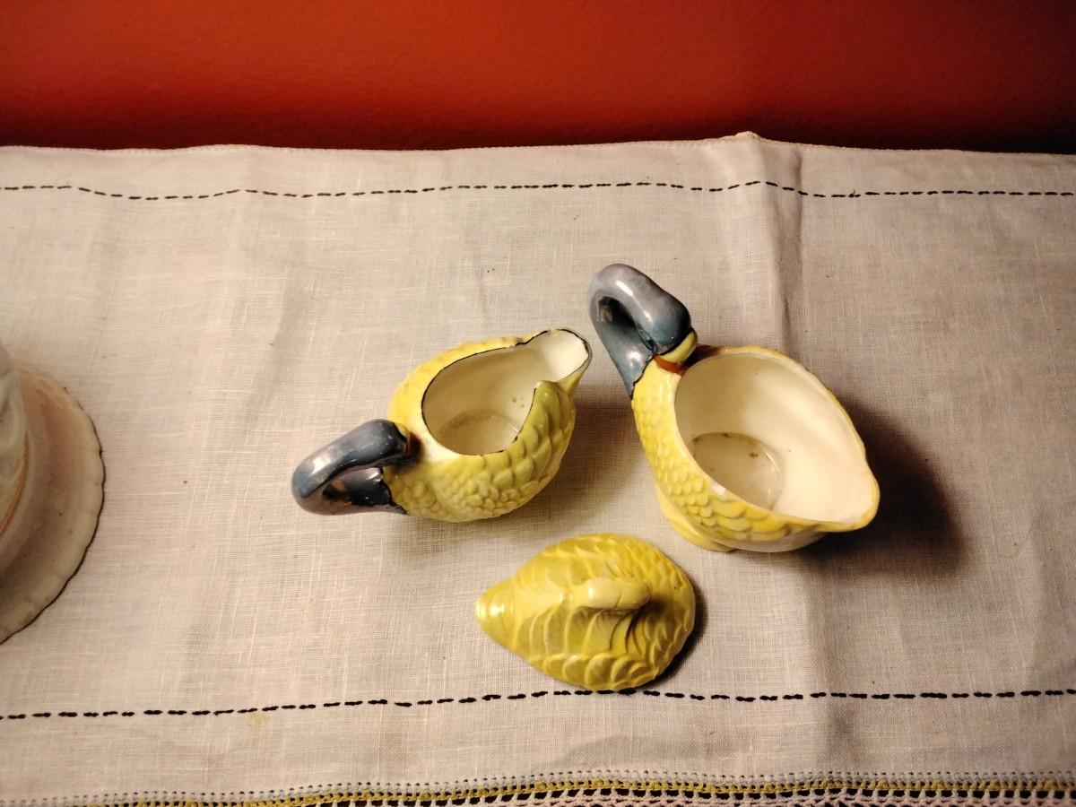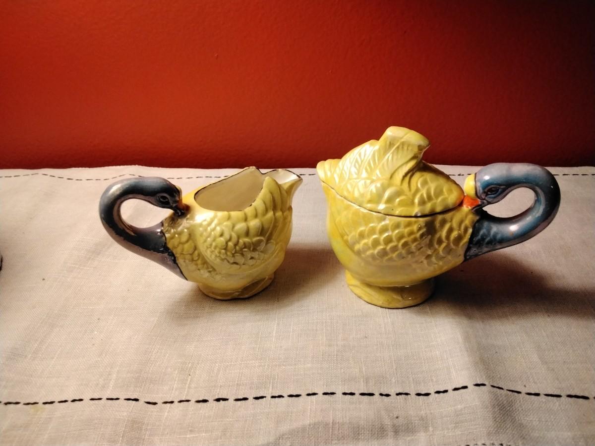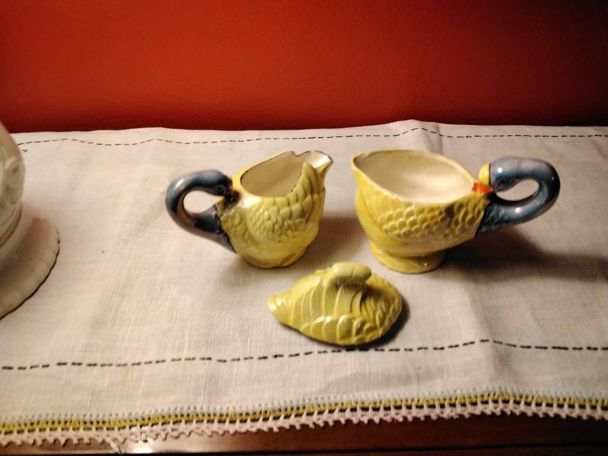 Beautiful Vintage Majolica Creamer and Sugar Swans