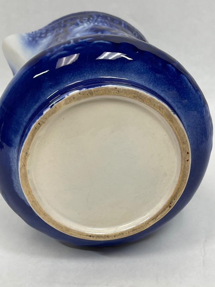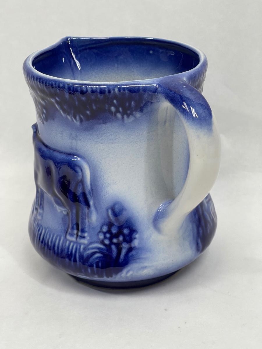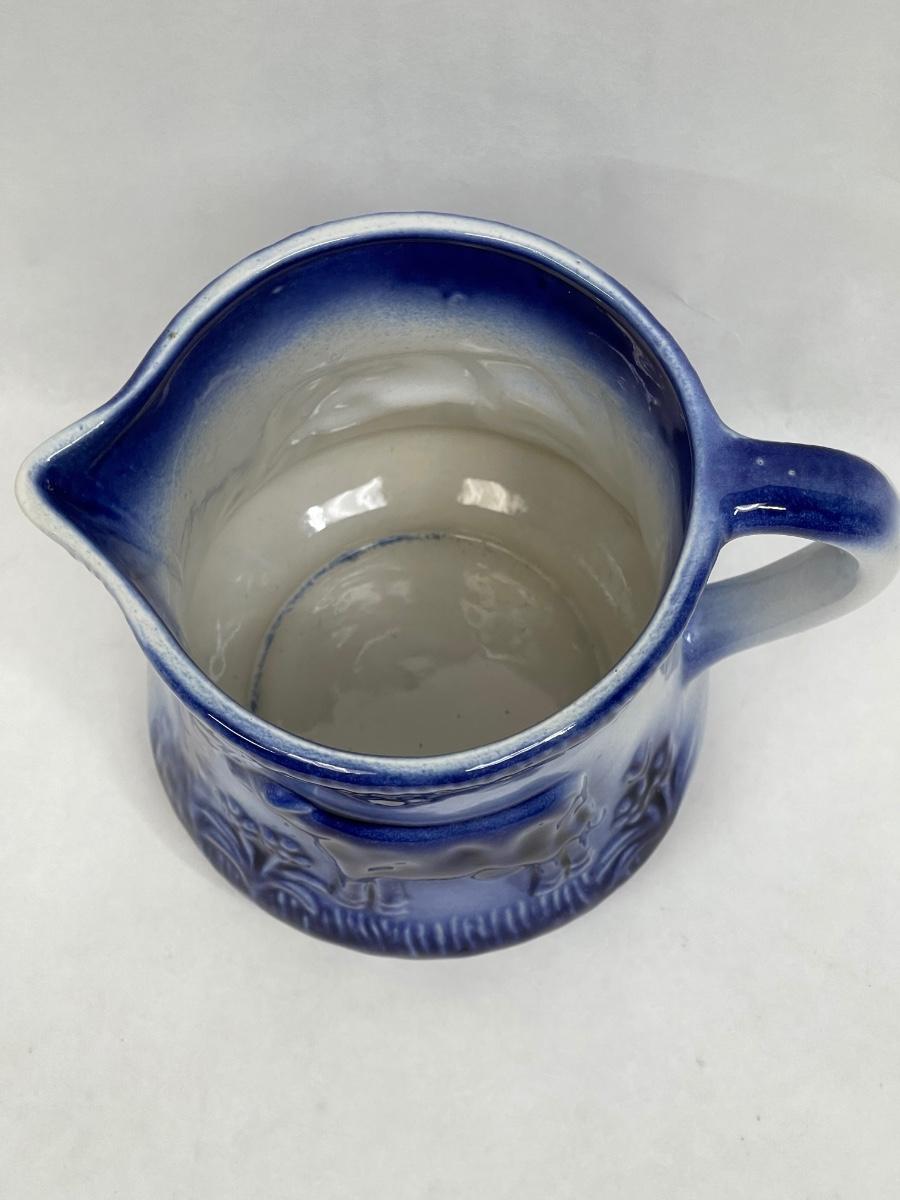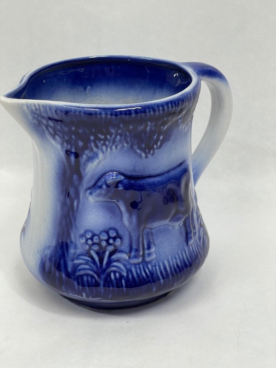 Vintage Saly Glaze Stoneware Pottery Blue White Milk PItcher Cow