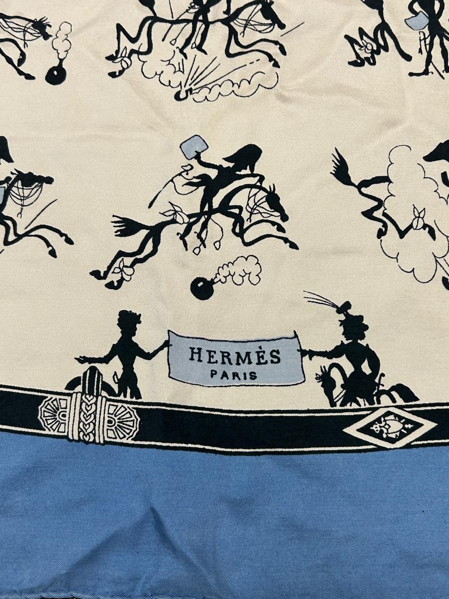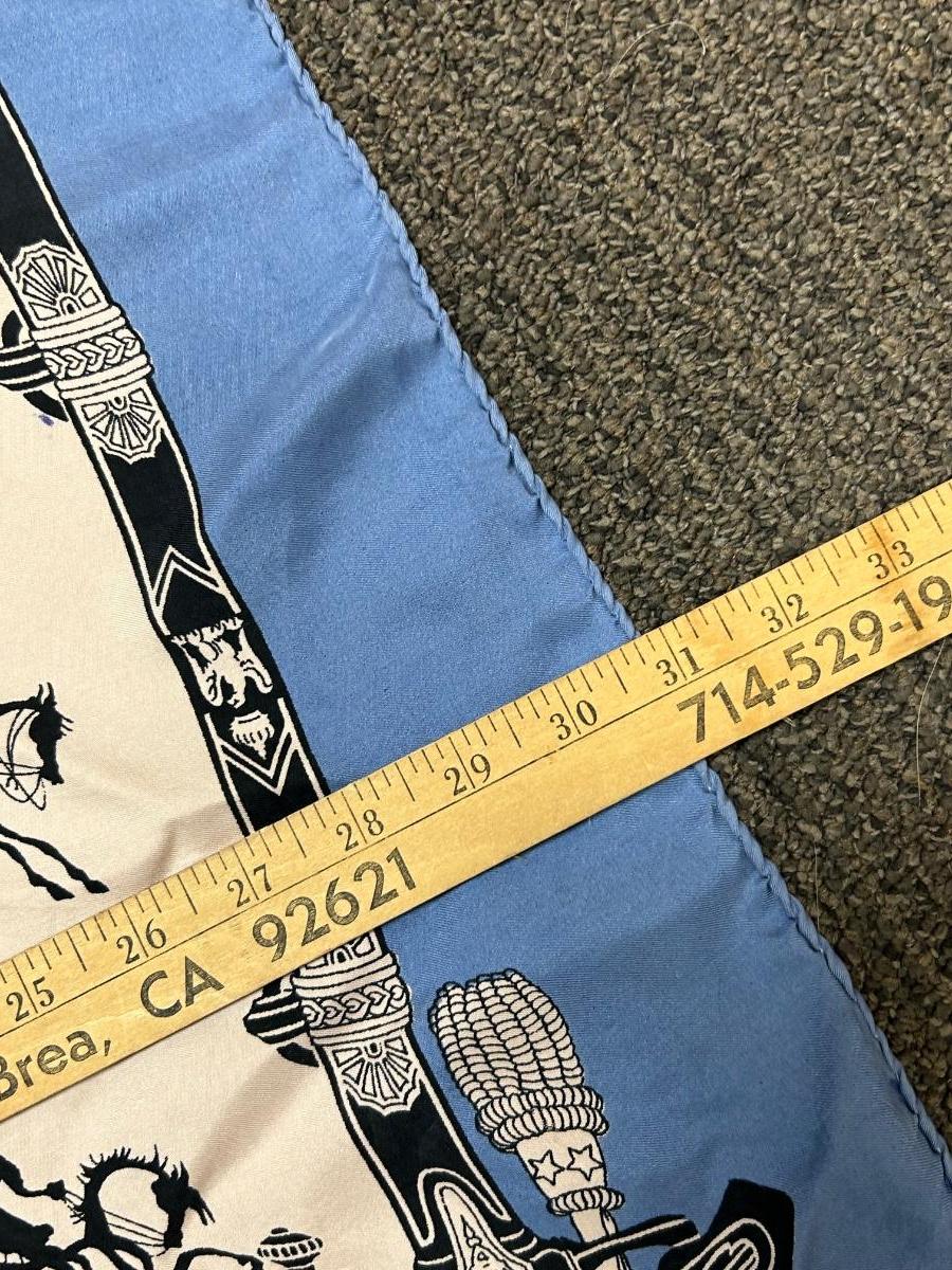Vintage Hermes Lettre de Napoleon a Murat d'Apres Blue Edge Story Telling Silk Scarf