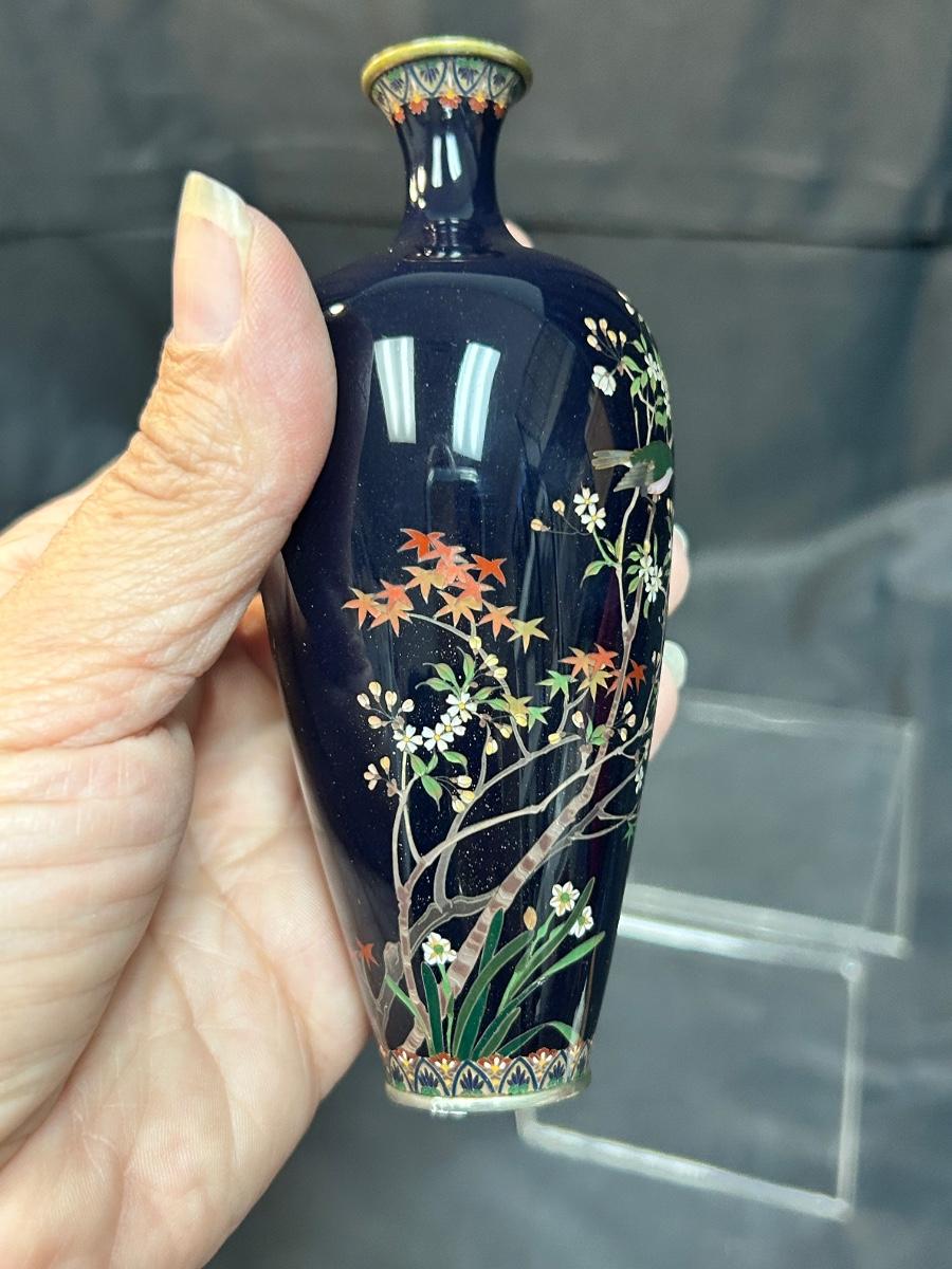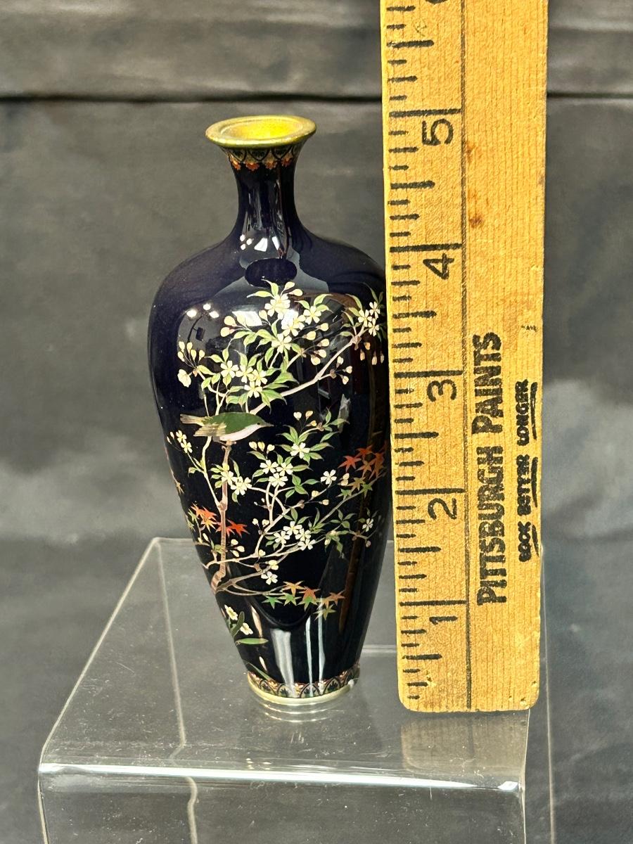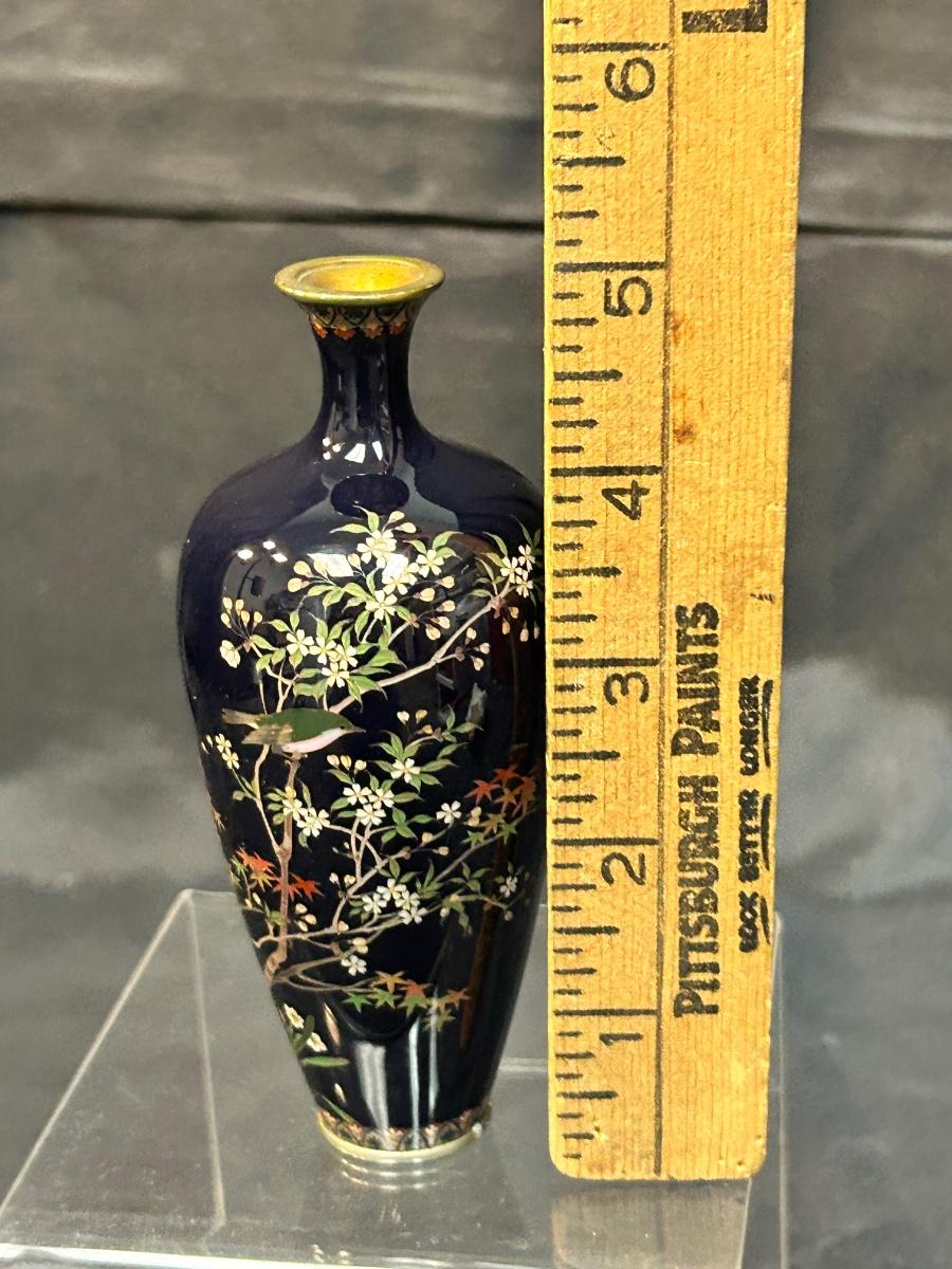Vintage Antique Japanese Meiji Period Miniature Small Cloisonne Vase Enamel on Metal