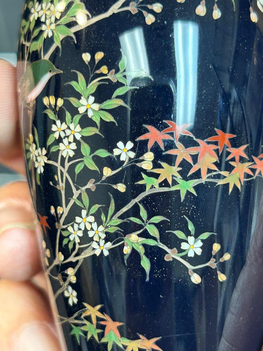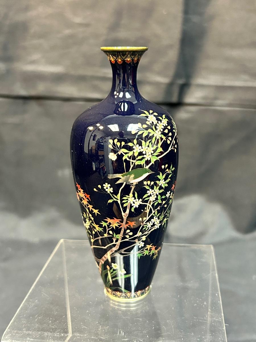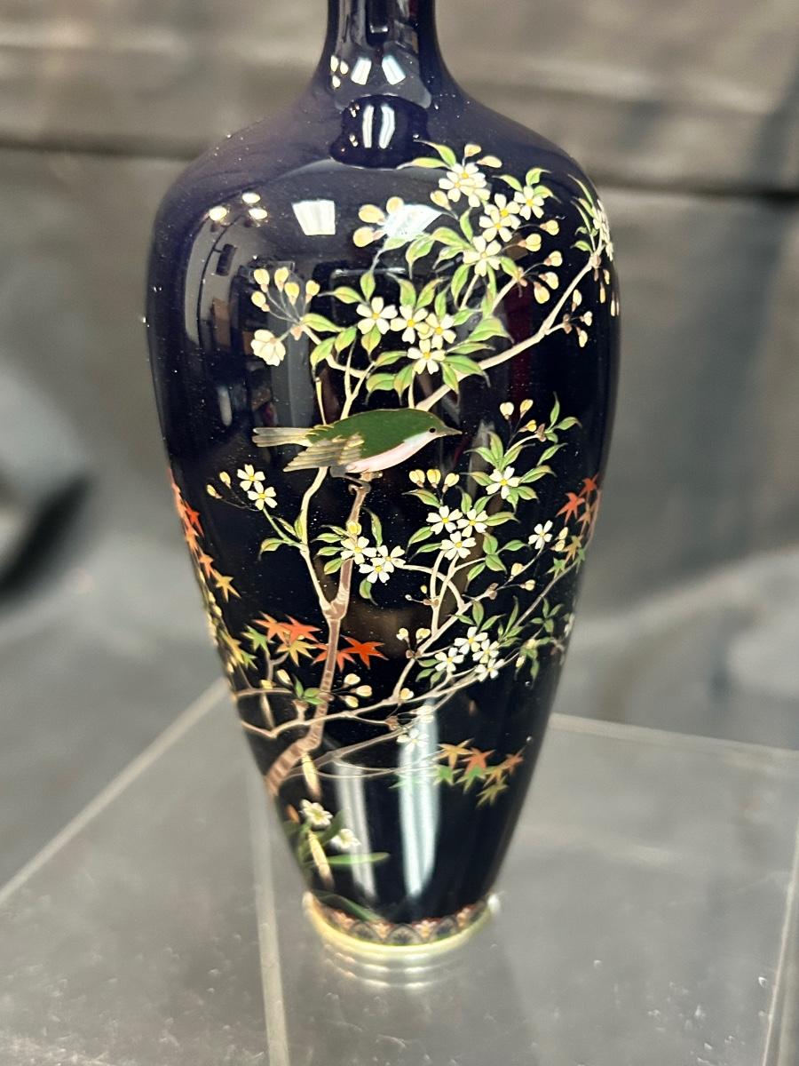 Vintage Antique Japanese Meiji Period Miniature Small Cloisonne Vase Enamel on Metal