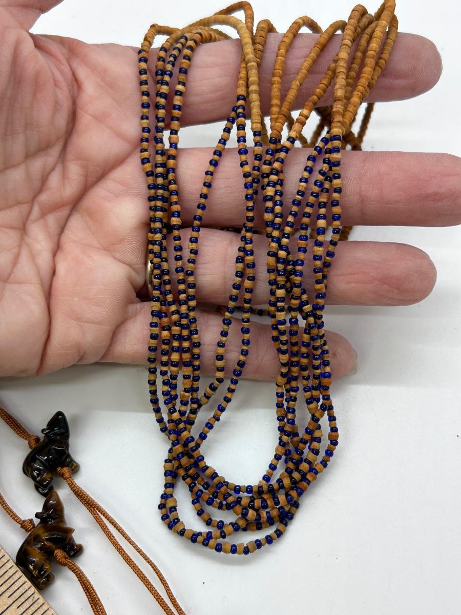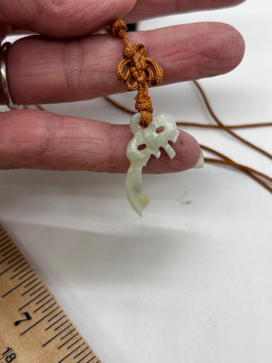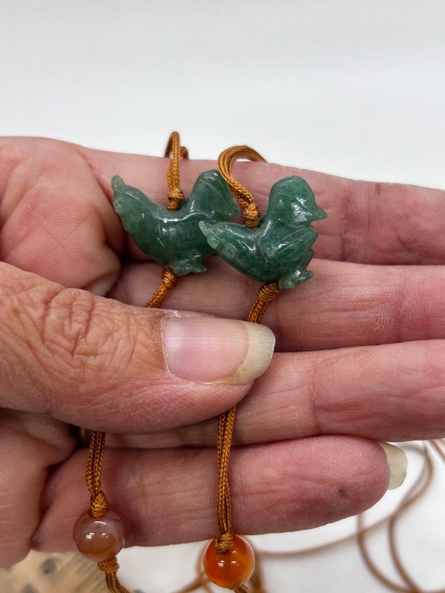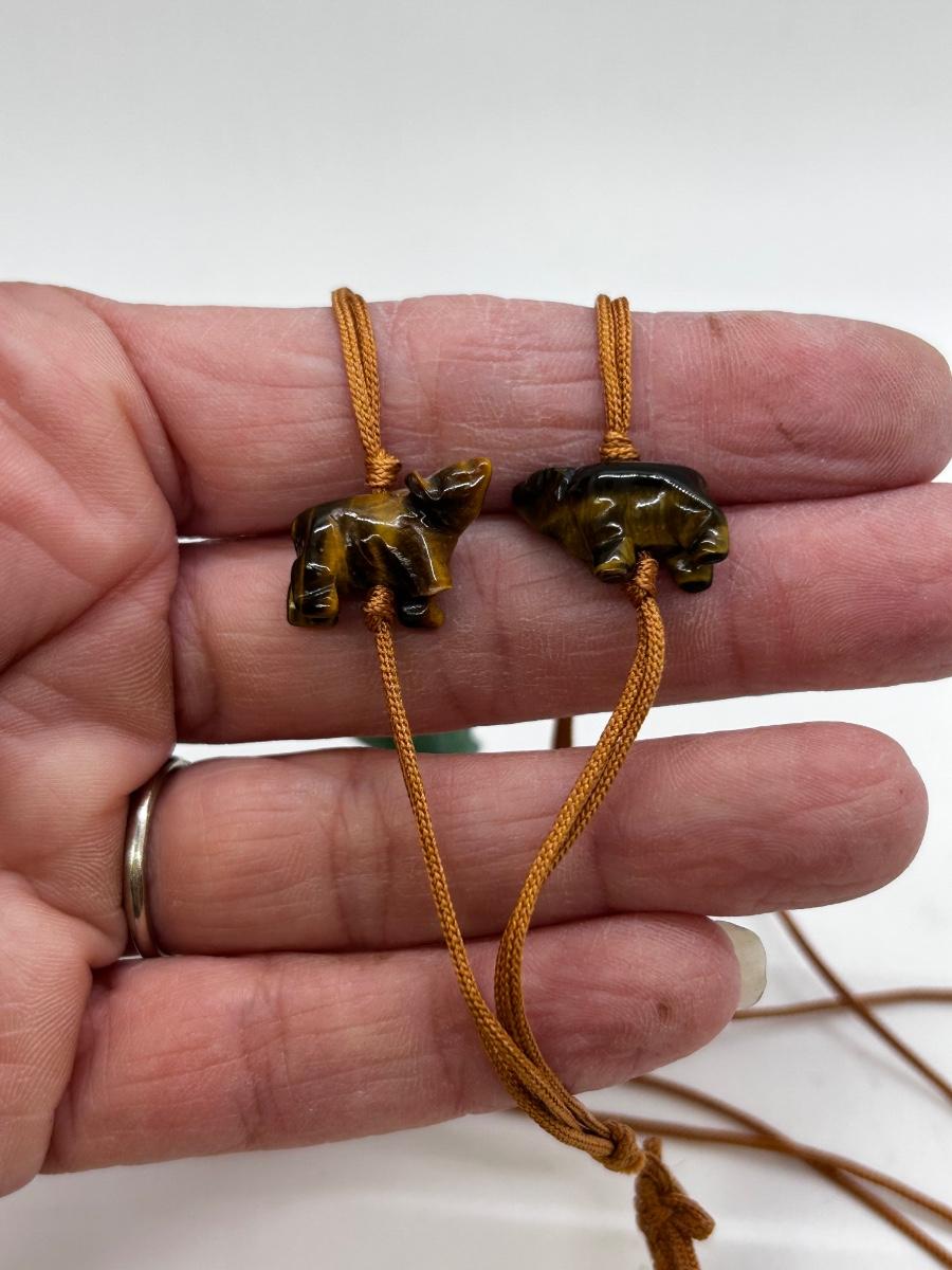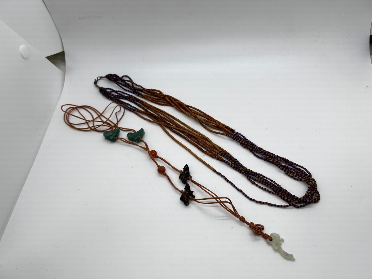 Pair of Natural Material Wood Carved Stone Fashion Necklaces. In good condition, except the pendant on stone animal necklace looks to be broken.