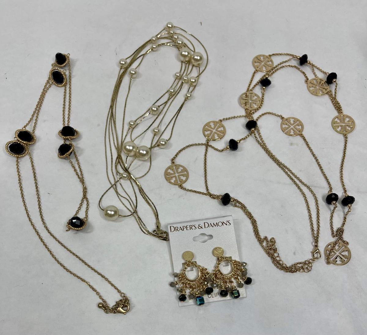 Costume Jewelry Lot - 3 necklaces & pair of Earrings