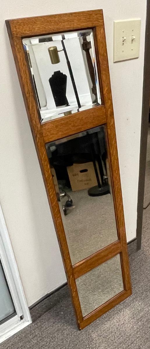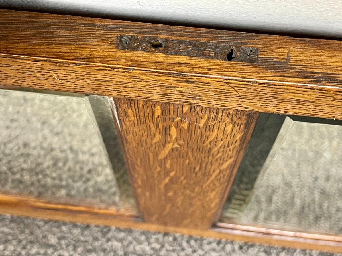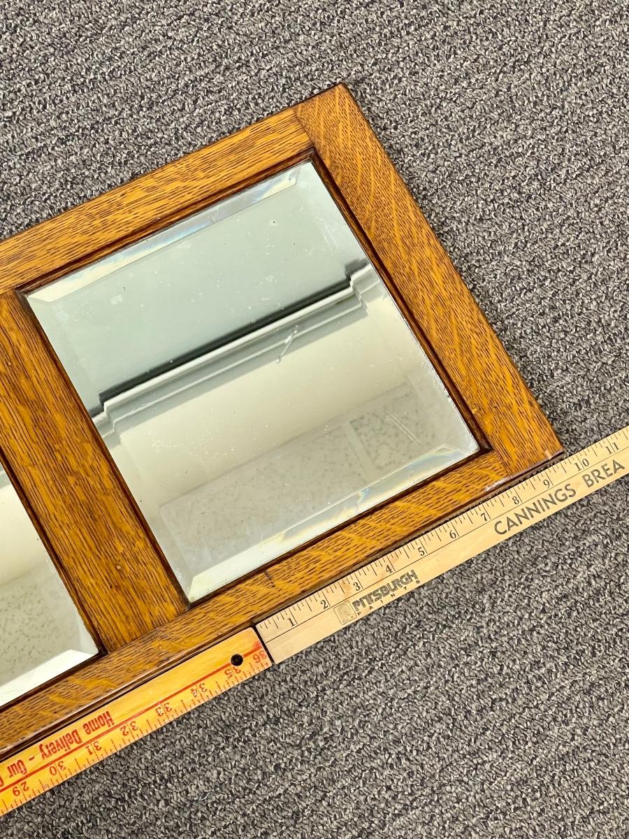 Antique Arts & Crafts Style Heavy Hanging Oak Triple Mirror