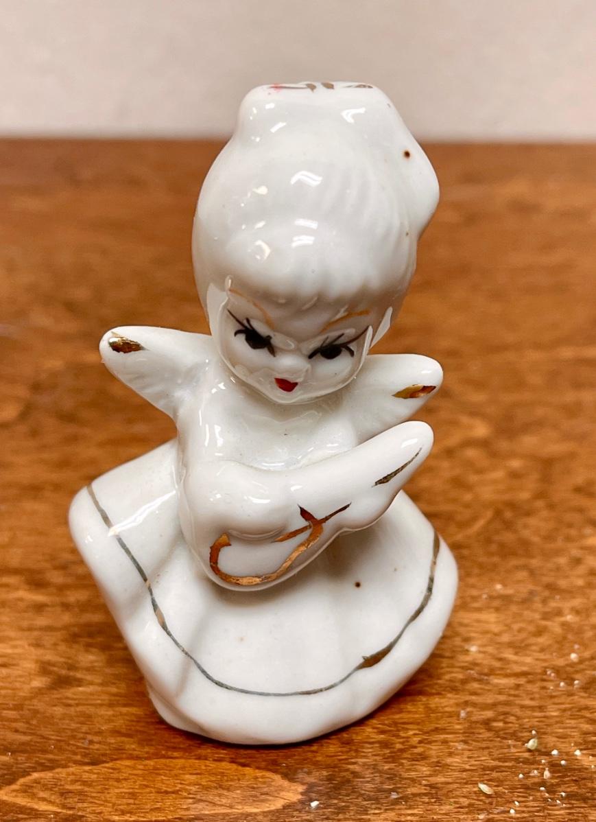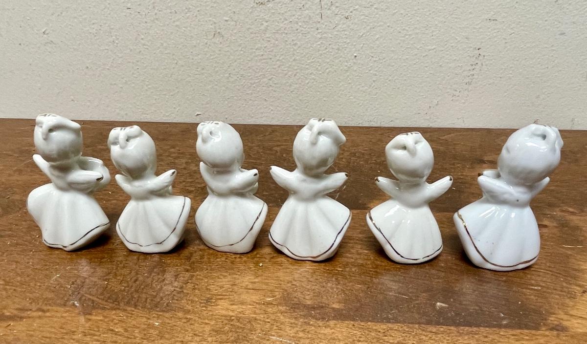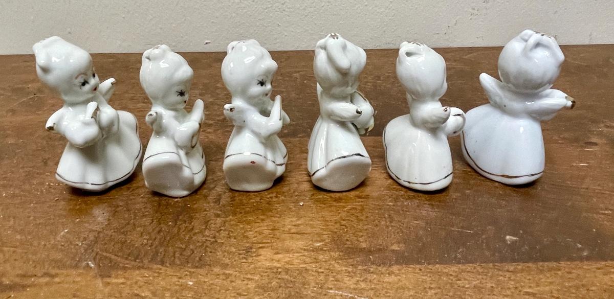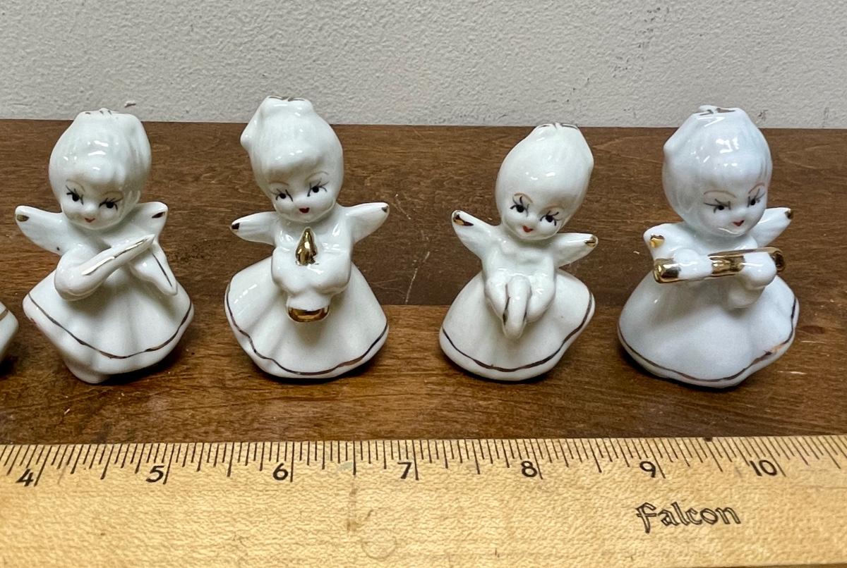 VIntage 6pc Set of Porcelain White Gold Angels w/Musical Instruments Figurines