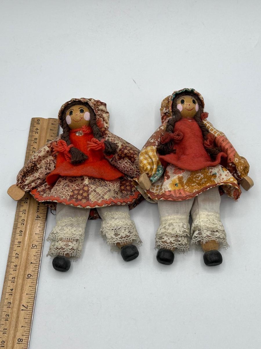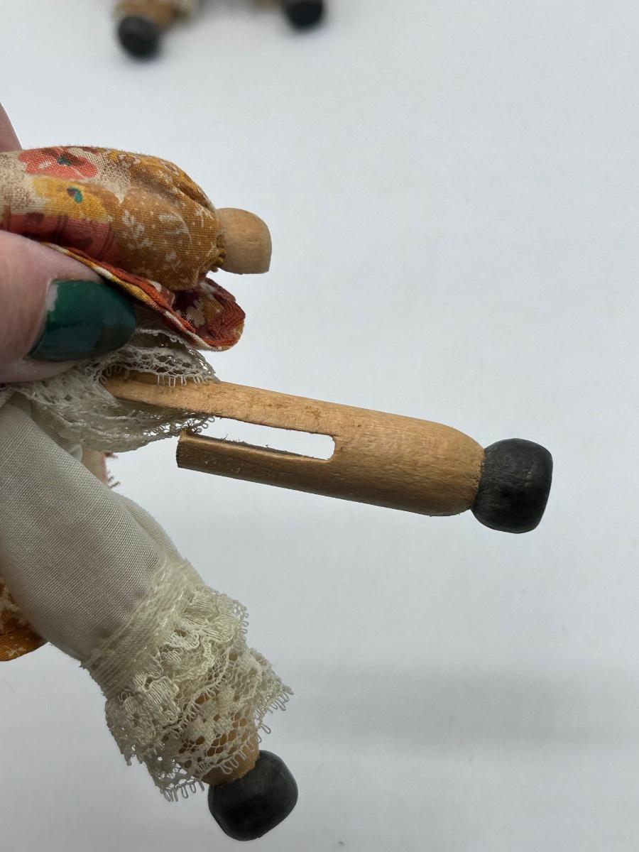 Pair of Folk Art Dolls Painted Clothes Pins and Wood Bead