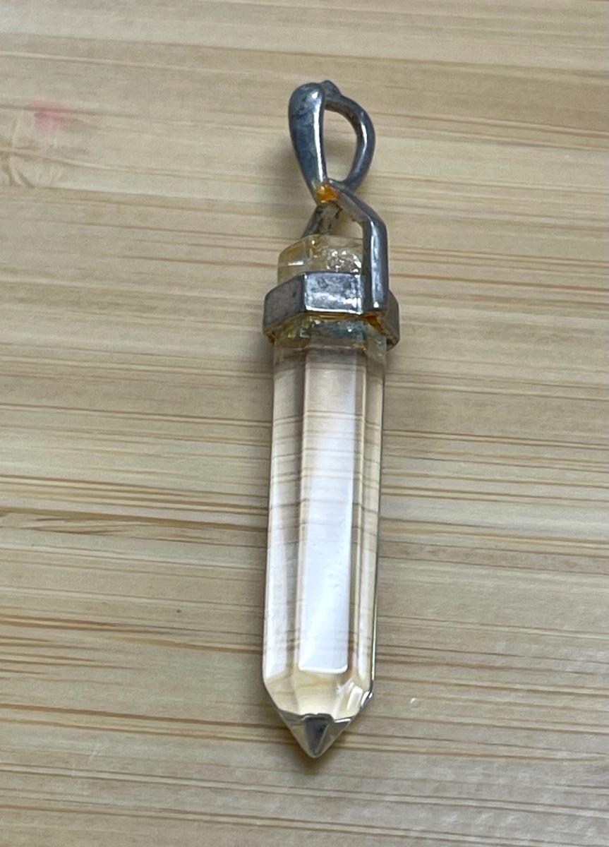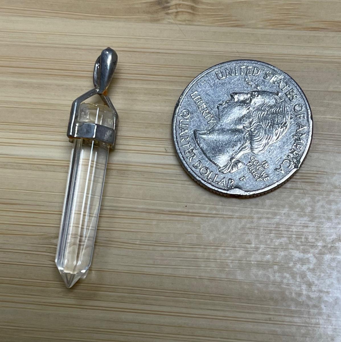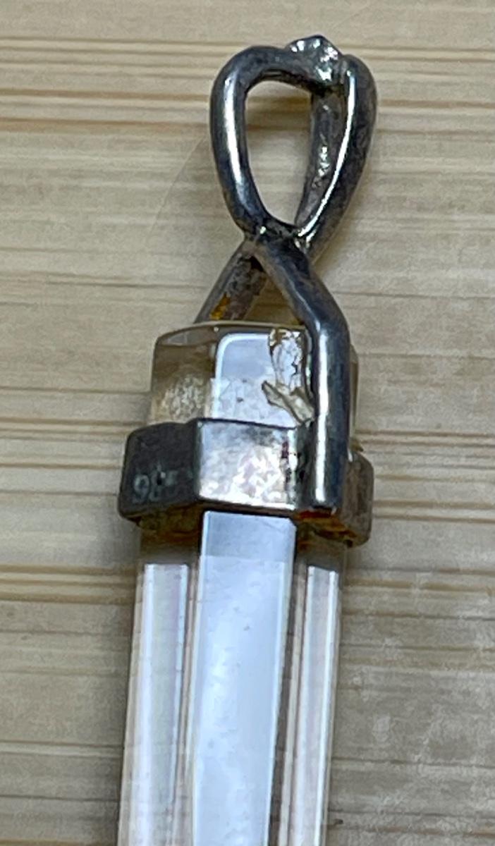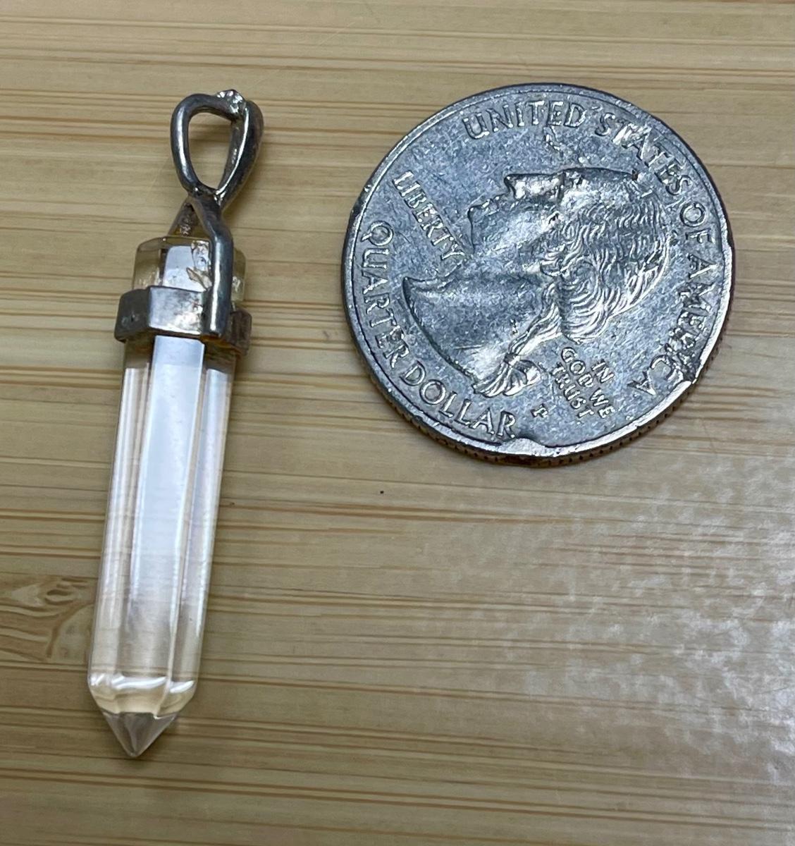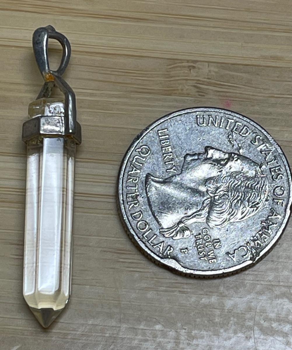 Quartz Crystal Healing Mystic Pendant Charm in Sterling Setting. Stamped 925. Under 2" size.