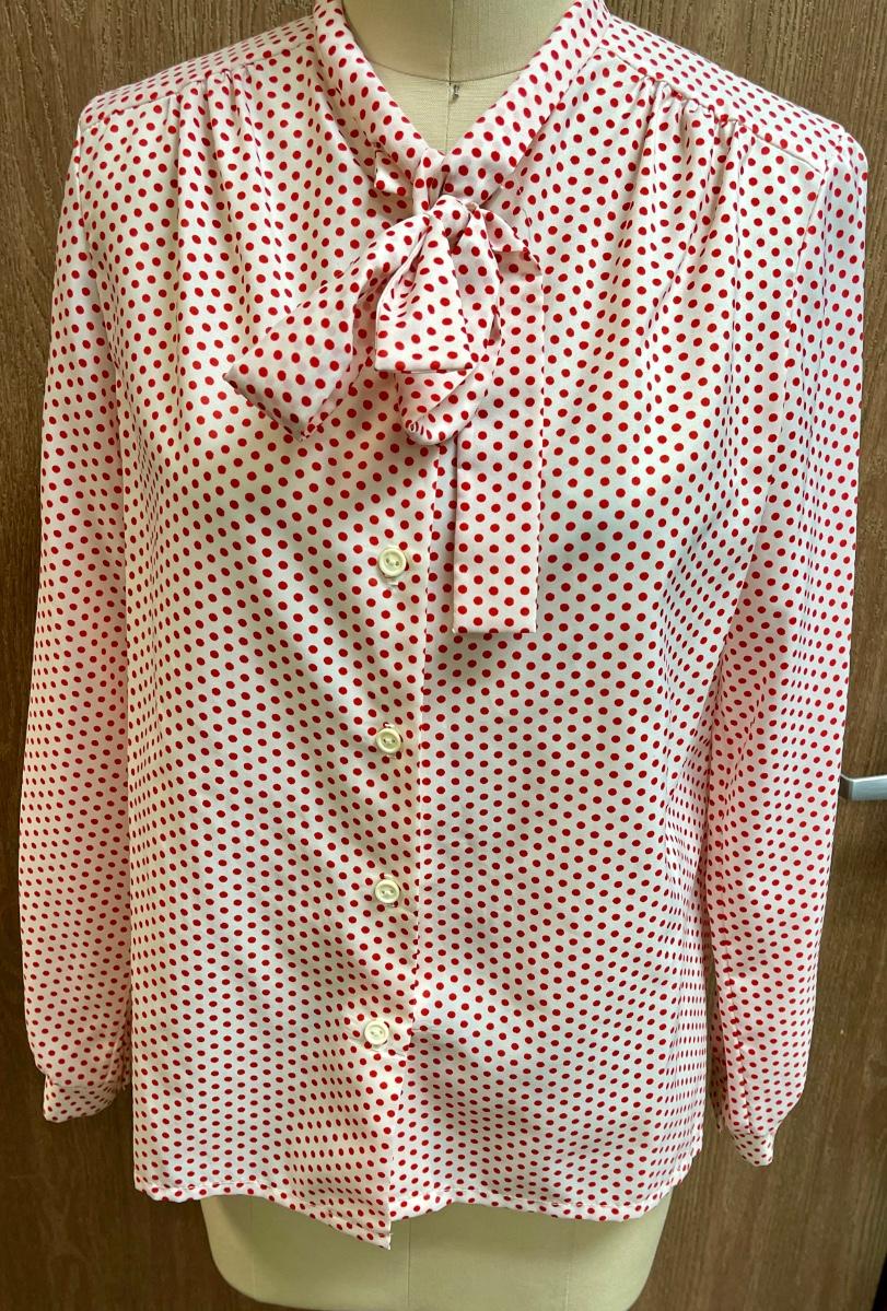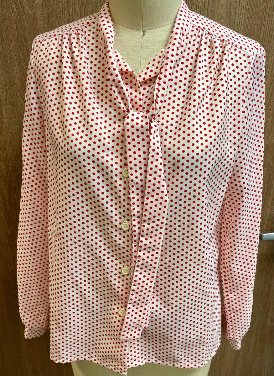 Essentially Separate Vintage Blouse white with red polka dots, size 14