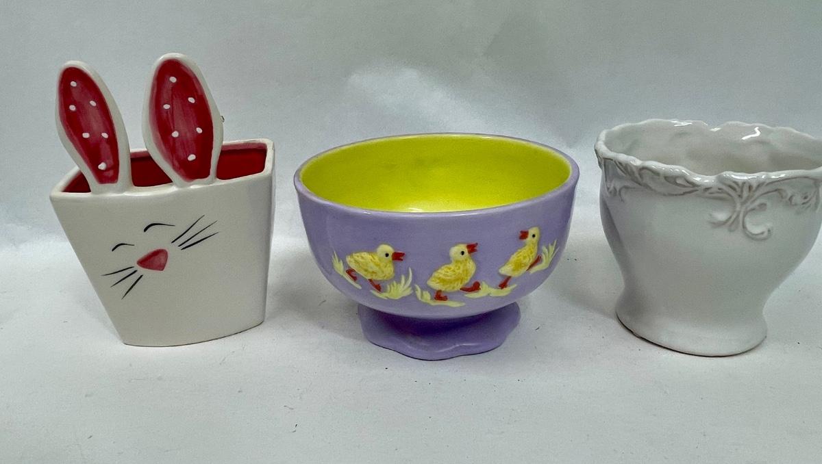 Spring Decor Lot - fake grass, ceramic bowls, and plastic tray