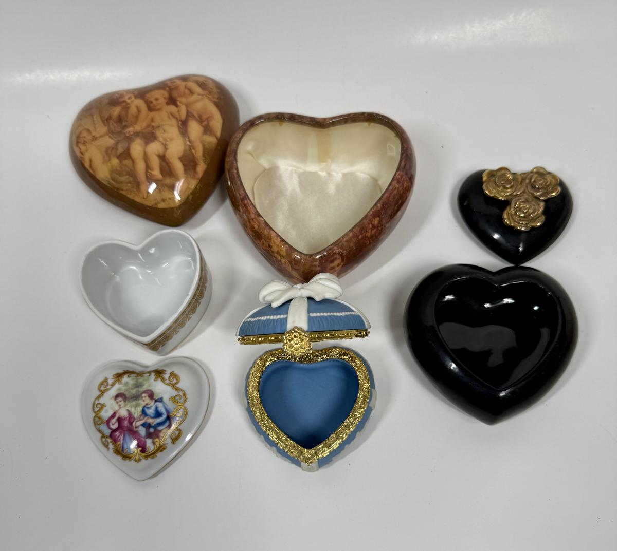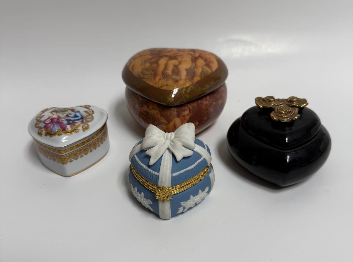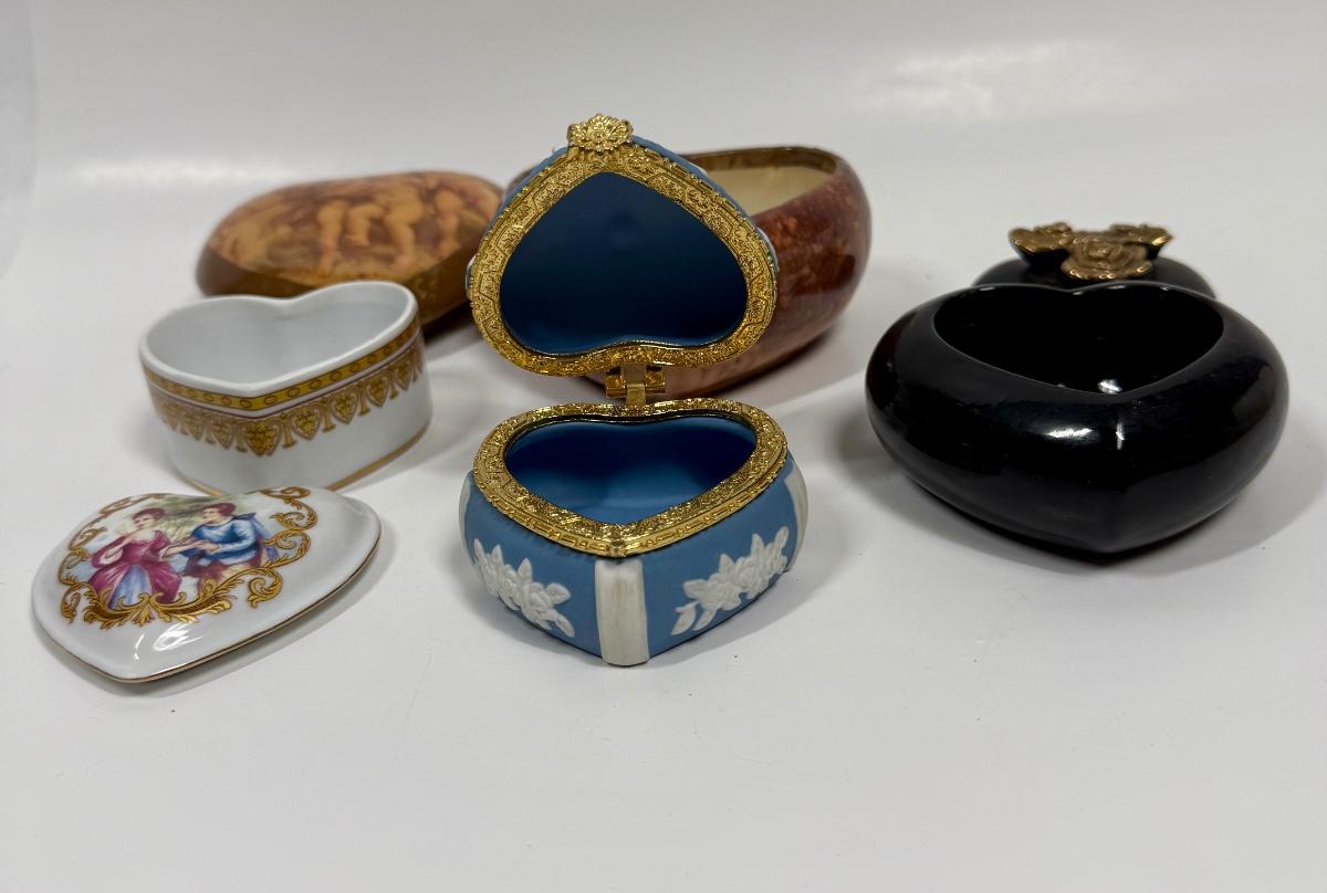 Lot of Vintage Keepsake Trinket Box Heart Shaped ceramic & wood boxes
