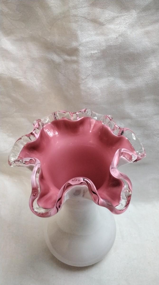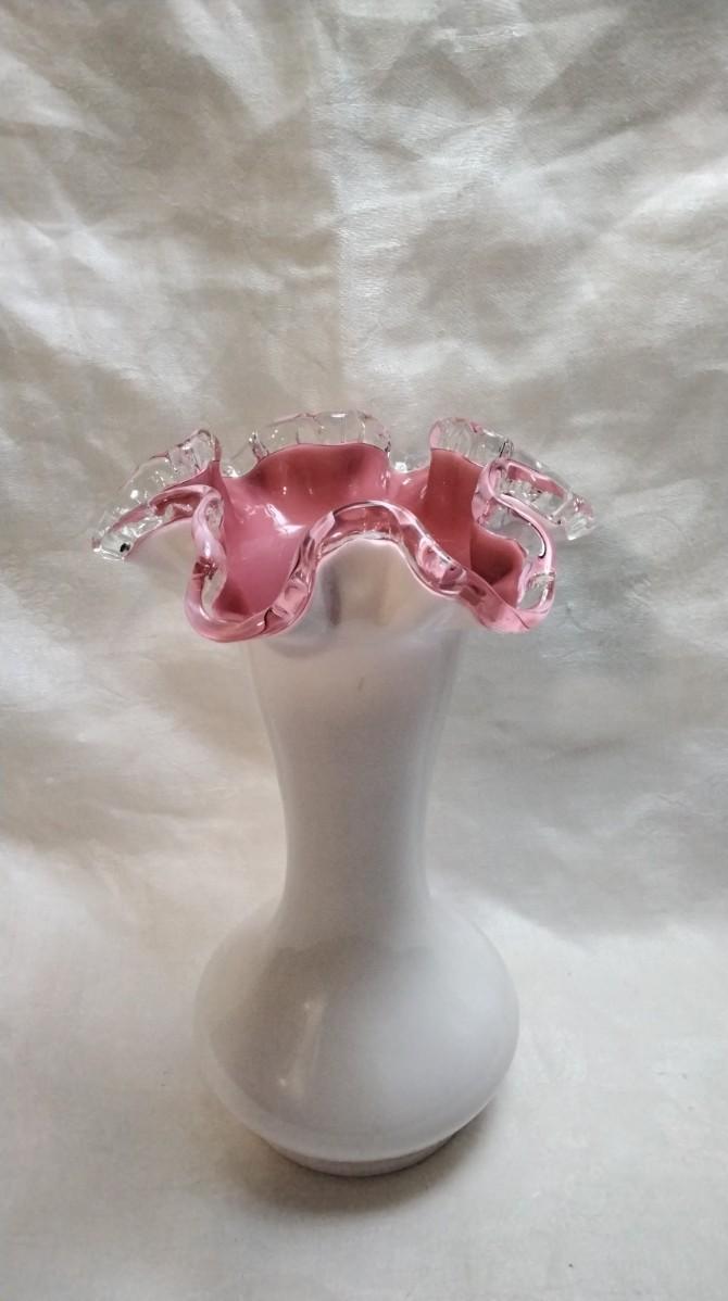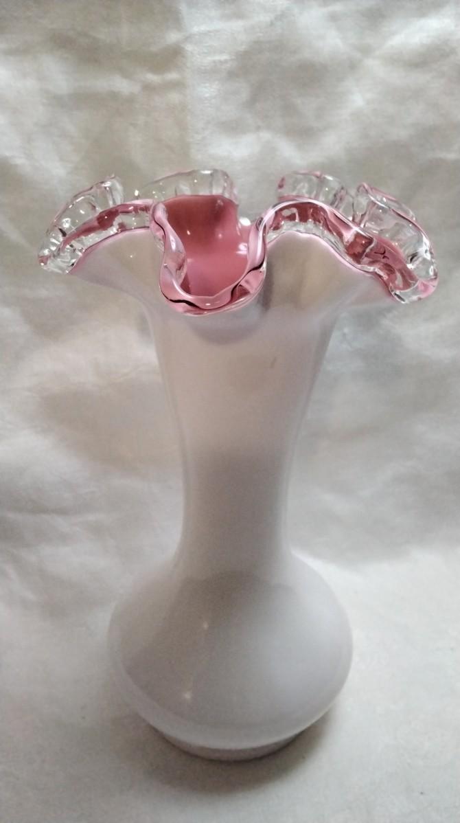 Vintage Fenton Peach Crest White Milk Glass Vase