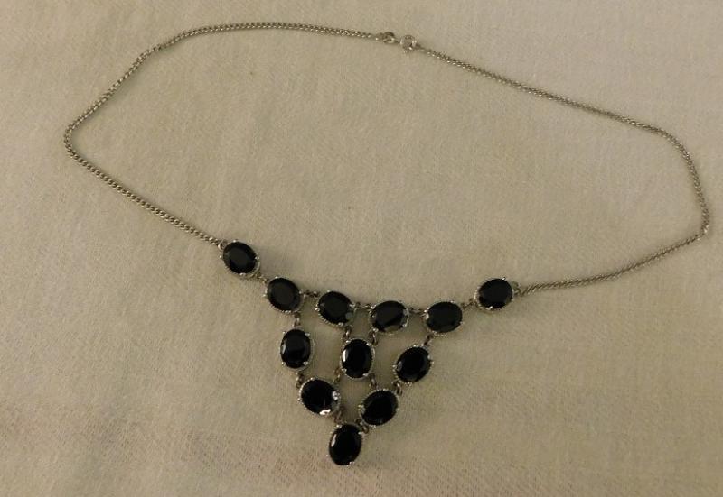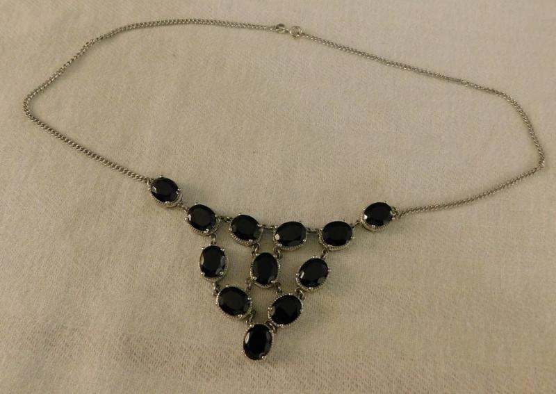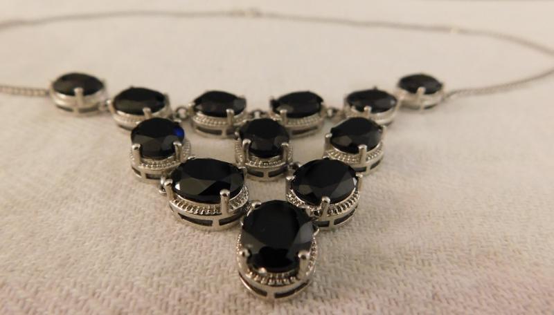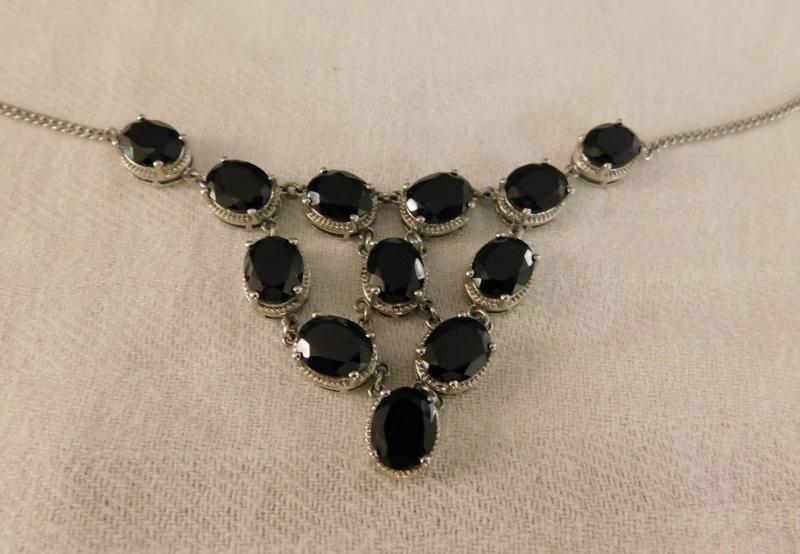 Thai Black Spinel 18" Bib Necklace Set in Sterling Silver has spring clasp.
