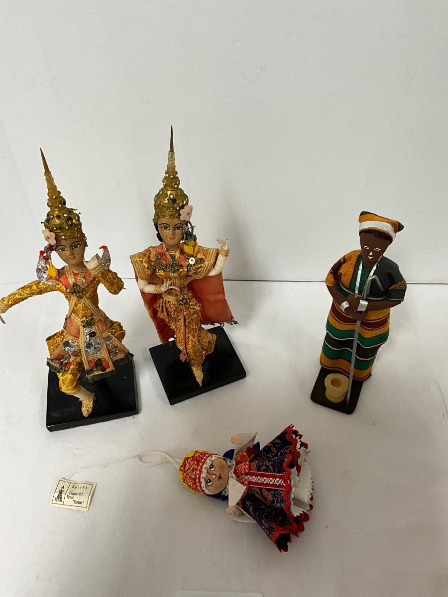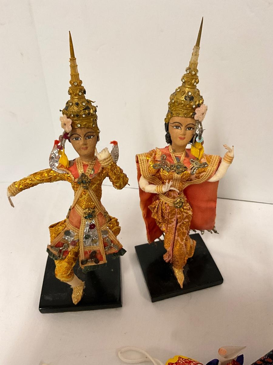 Pair of vintage Thailand dancing dolls plus 2 others as pictured