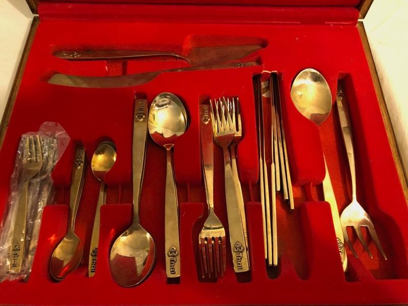 Set of 6 heavy brass Thai flatware made in Thailand of solid brass Thailand