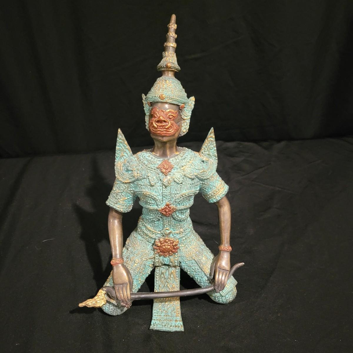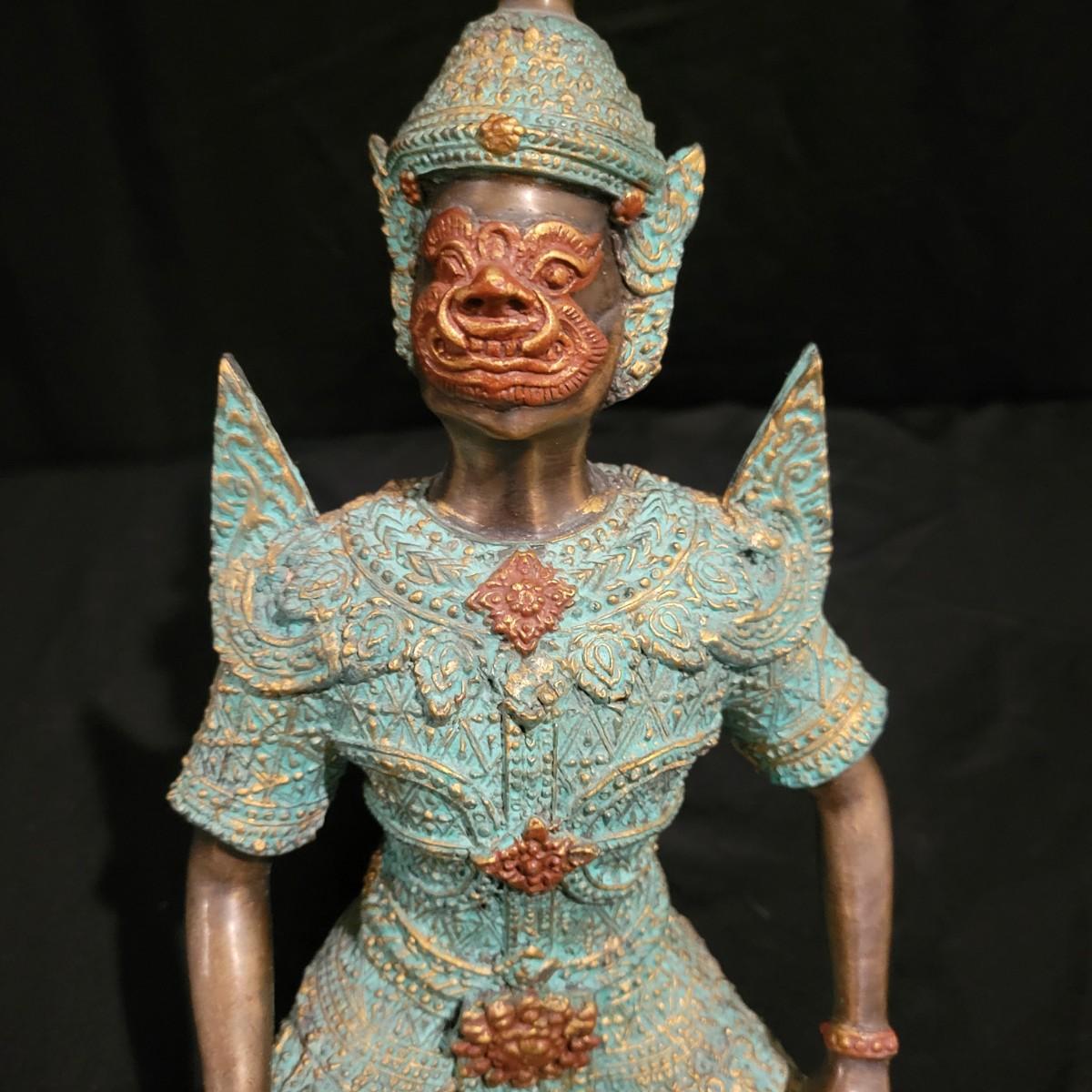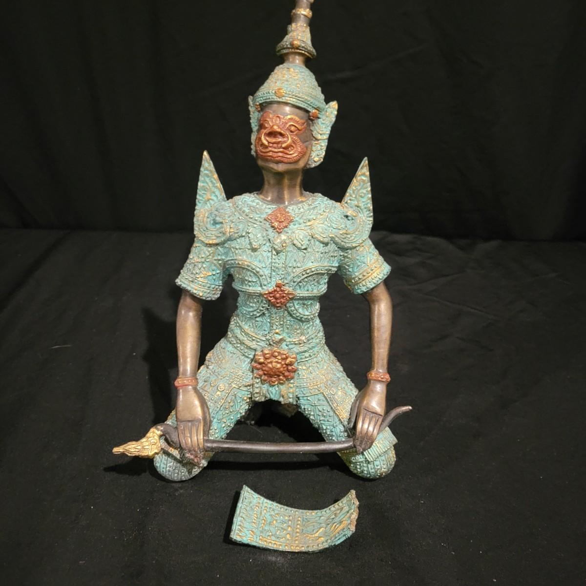 This item has the appearance of a Thai Ramayana Buddha statue that is made of what appears to be bronze. It measures approximately 7" x 4" x 11 5"H. There is a broken piece that is included and could possibly be repaired. Shipping available