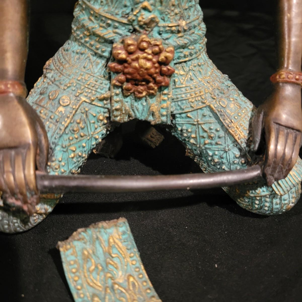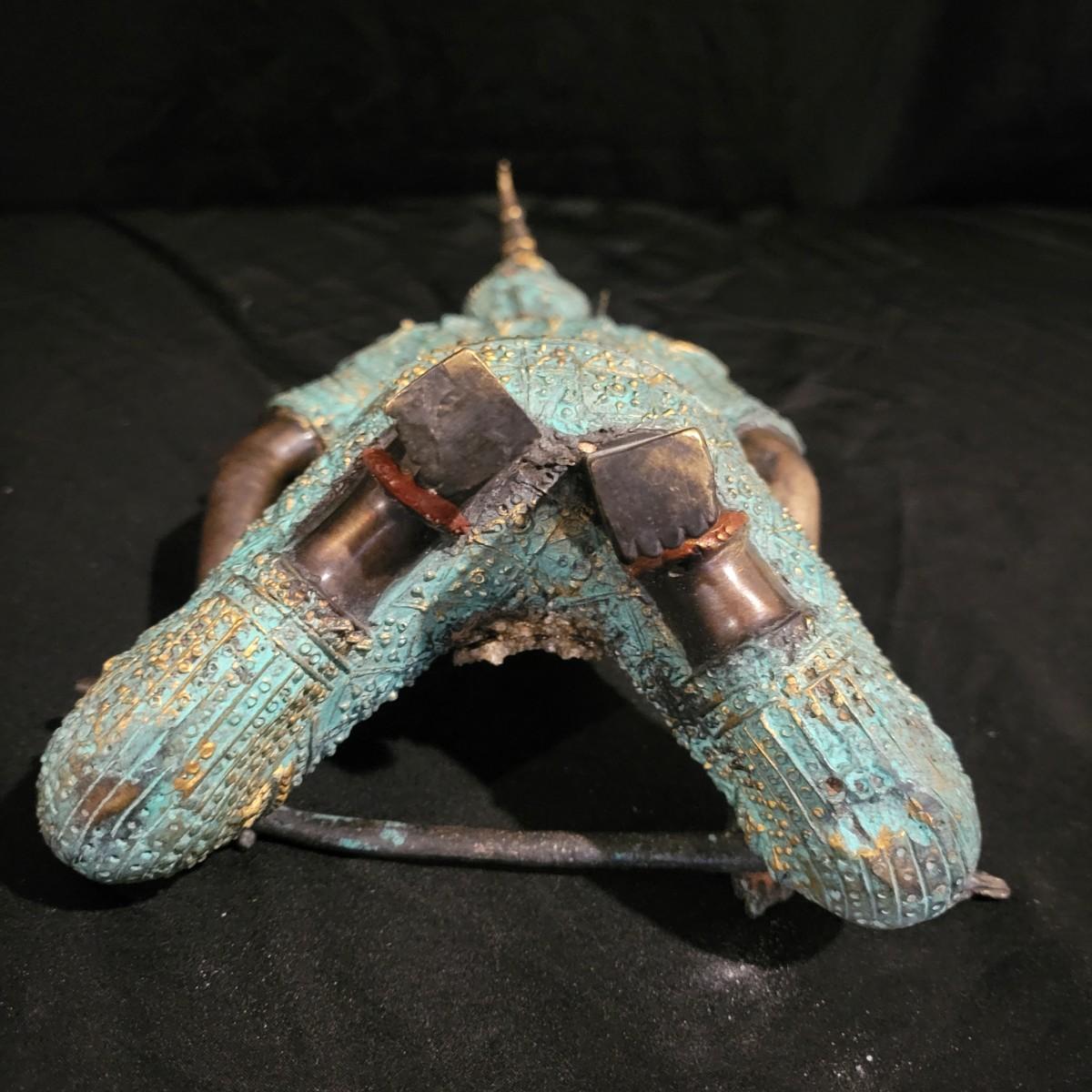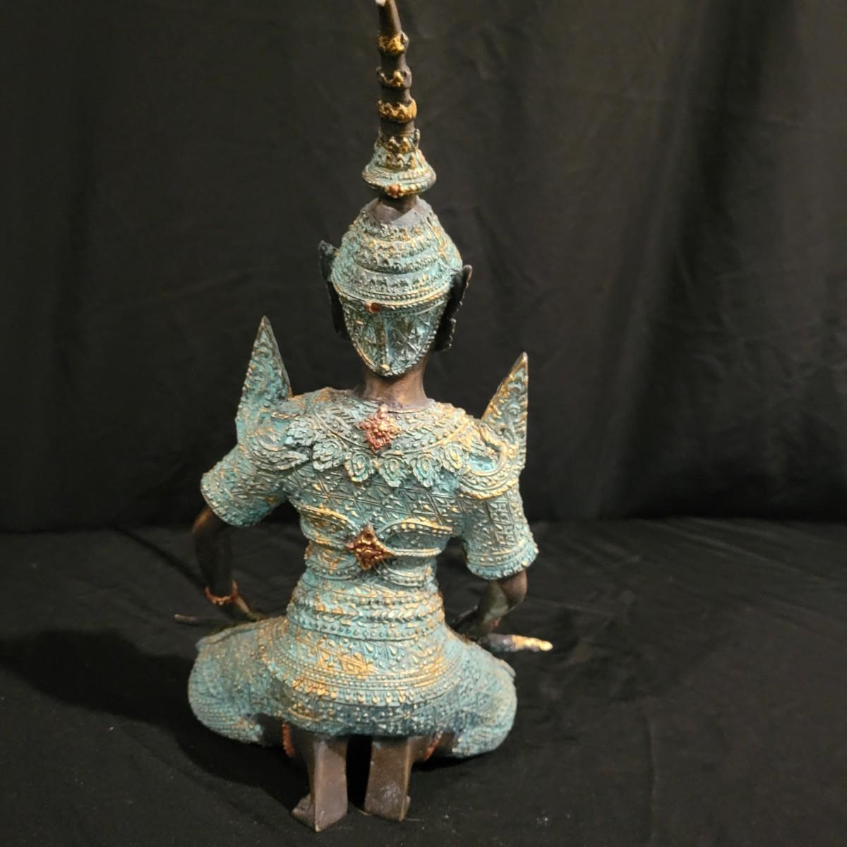 This item has the appearance of a Thai Ramayana Buddha statue that is made of what appears to be bronze. It measures approximately 7" x 4" x 11 5"H. There is a broken piece that is included and could possibly be repaired. Shipping available