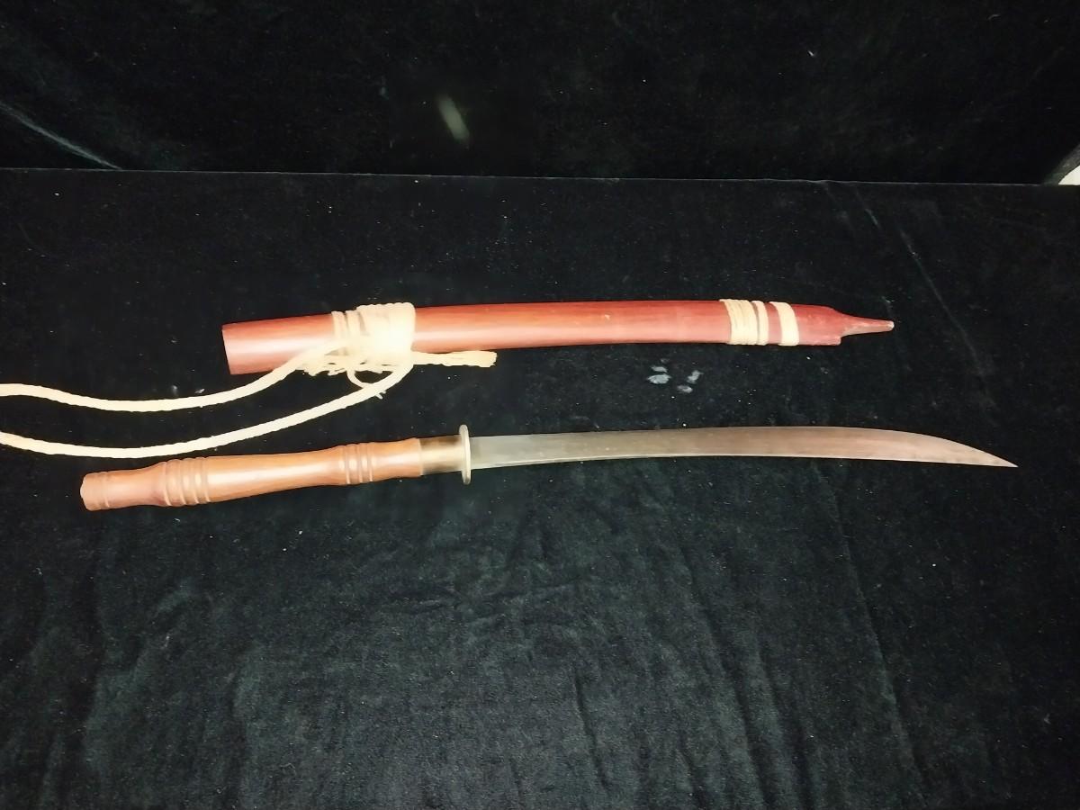 THAI STYLE SWORD WITH A TEAK WOOD HANDLE AND SHEATH