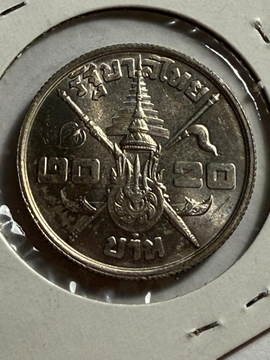 Thailand 1963 Uncirculated Condition Toned OBV Rama IX 20 Baht Silver Coin as Pictured.