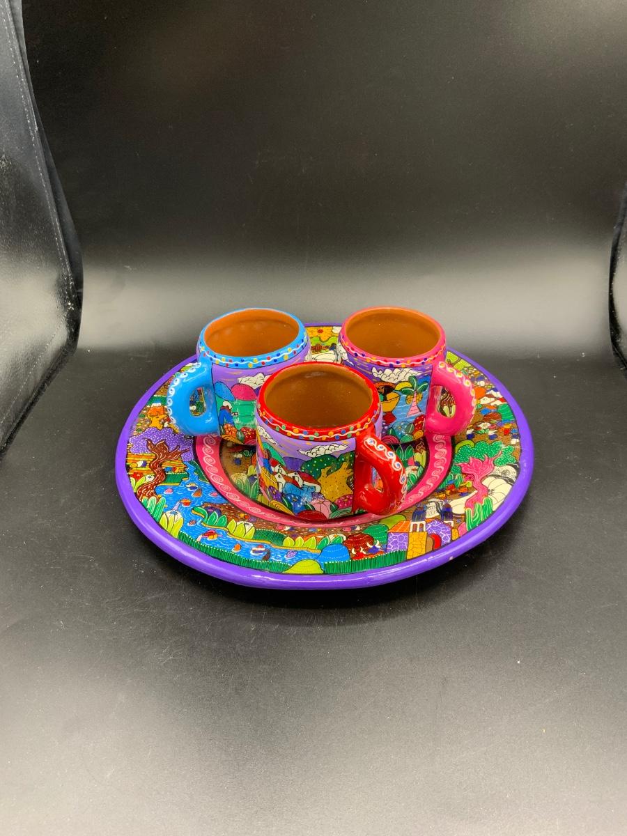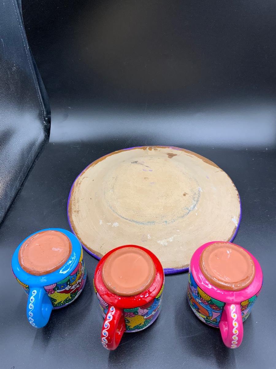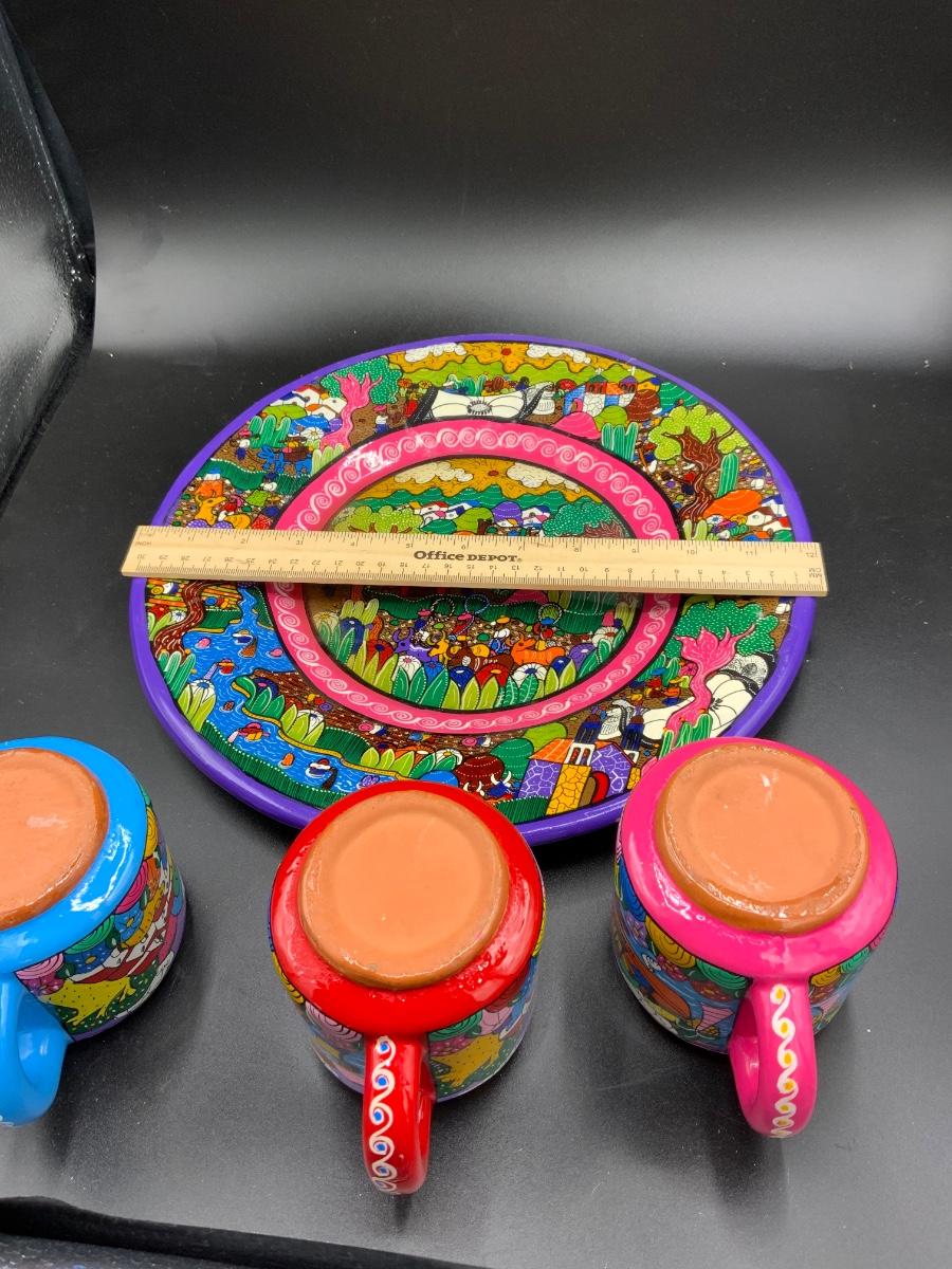 Mexican Folk Art Pottery Plate Wall Decor and coffee cups