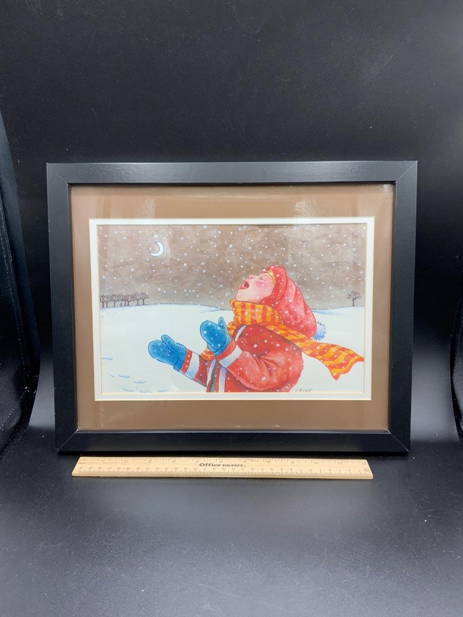 Snow scene framed print