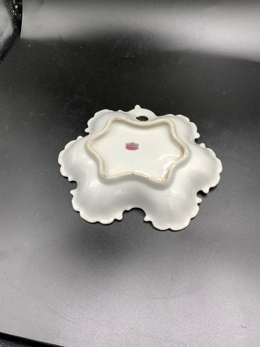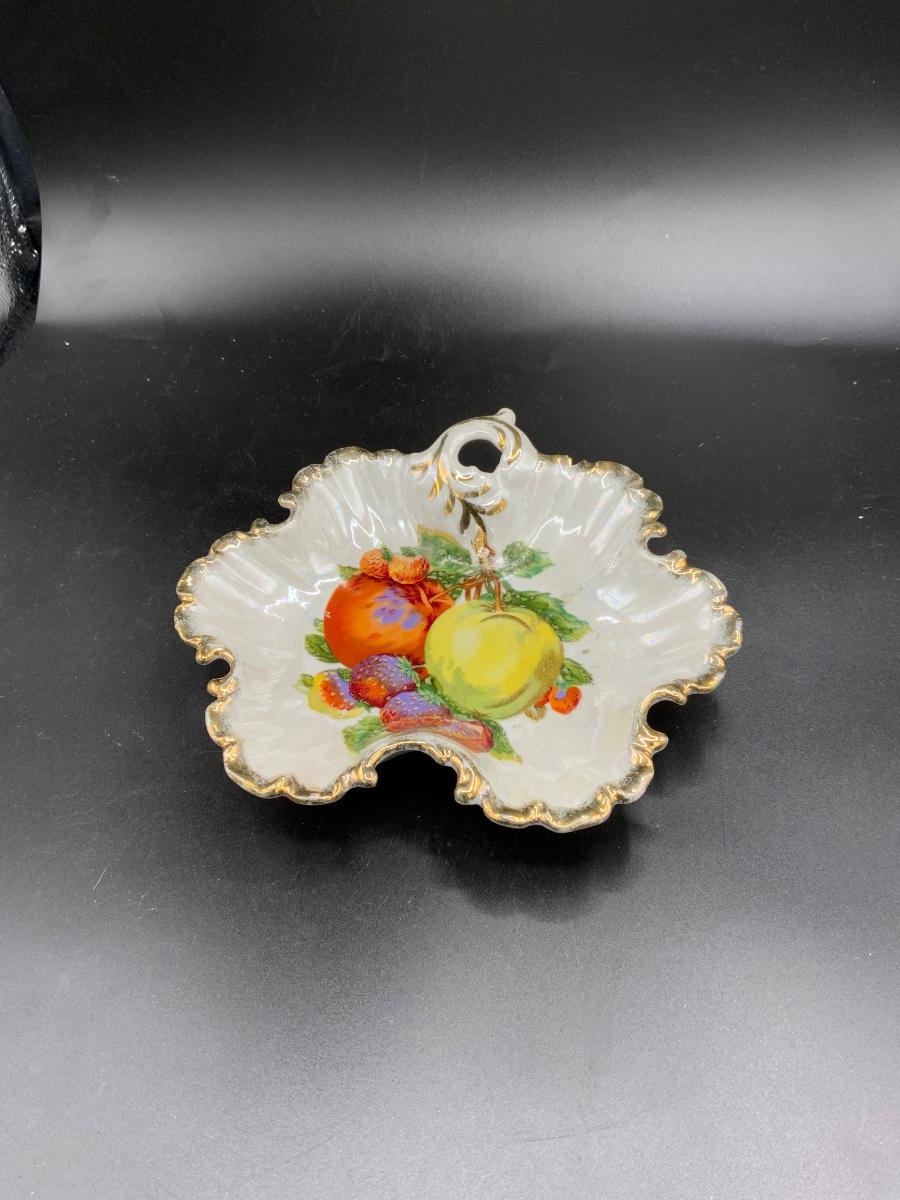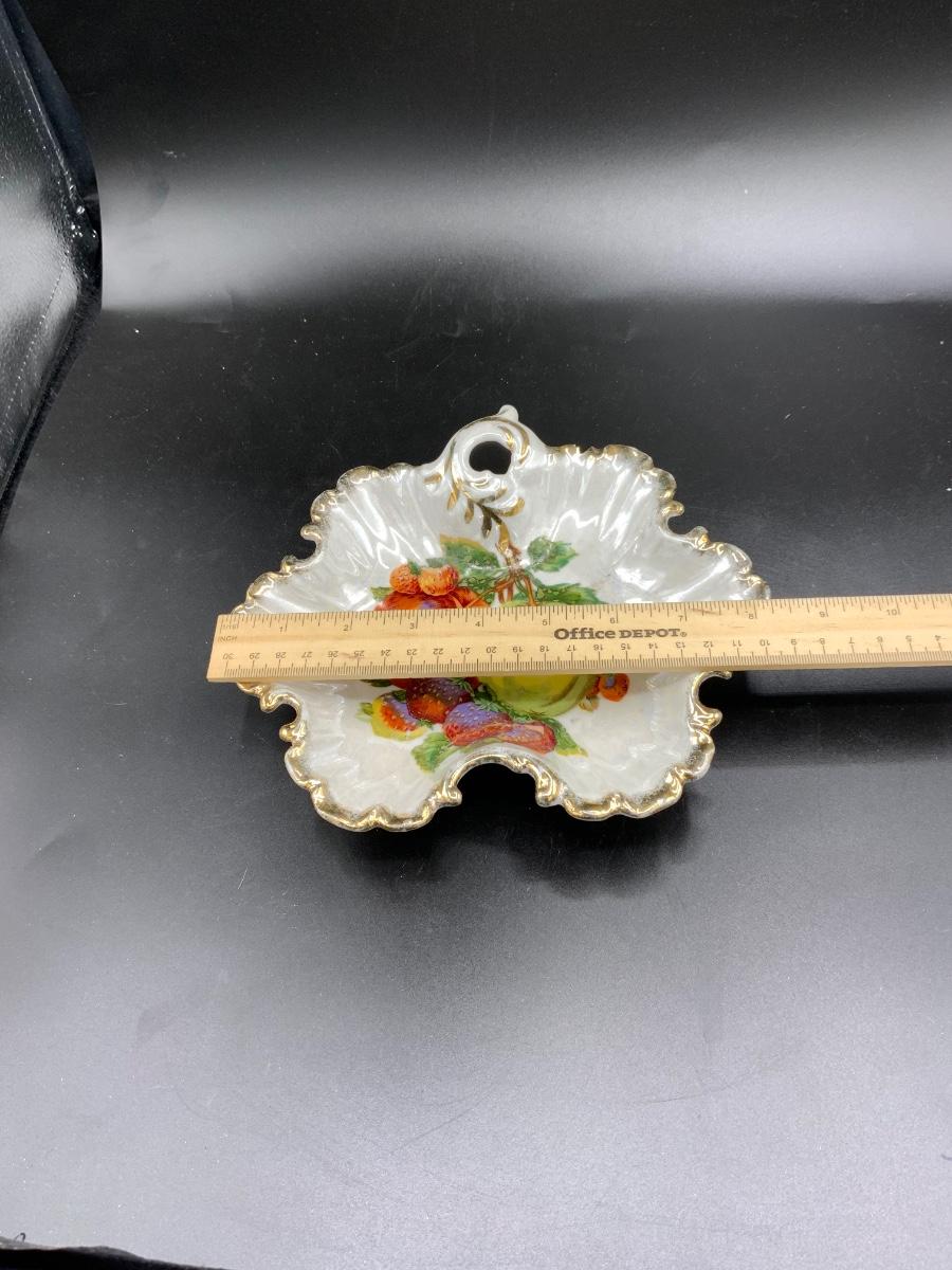 Vintage German Pear Fruit Gold Ruffle Candy Dish Hand Painted