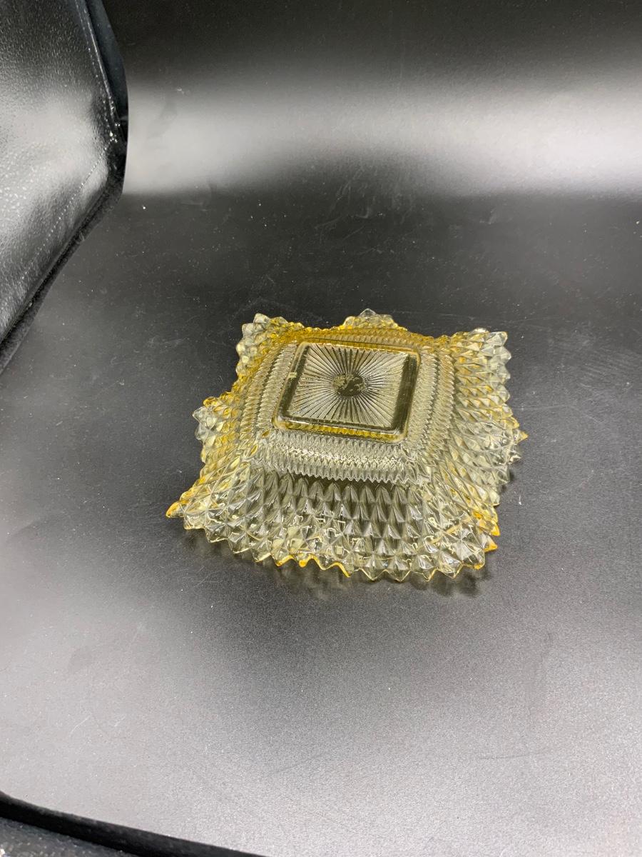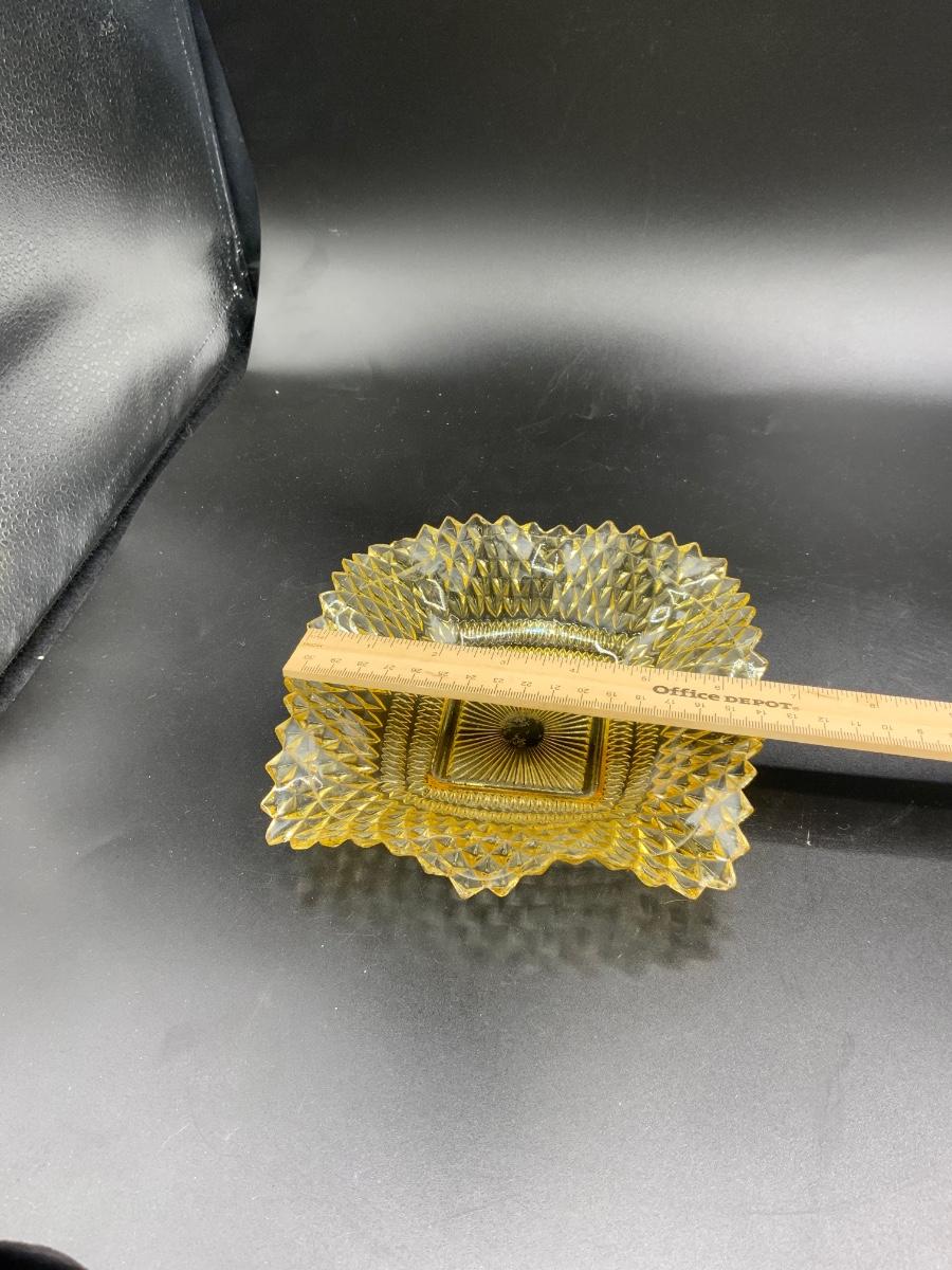 Indiana Glass Yellow Diamond Point Ruffled Edge Dish