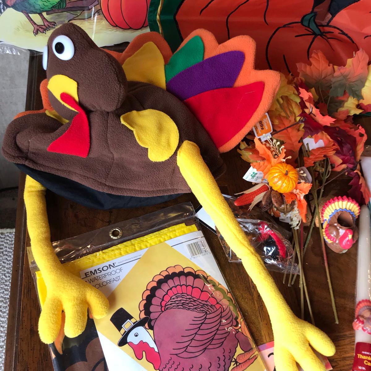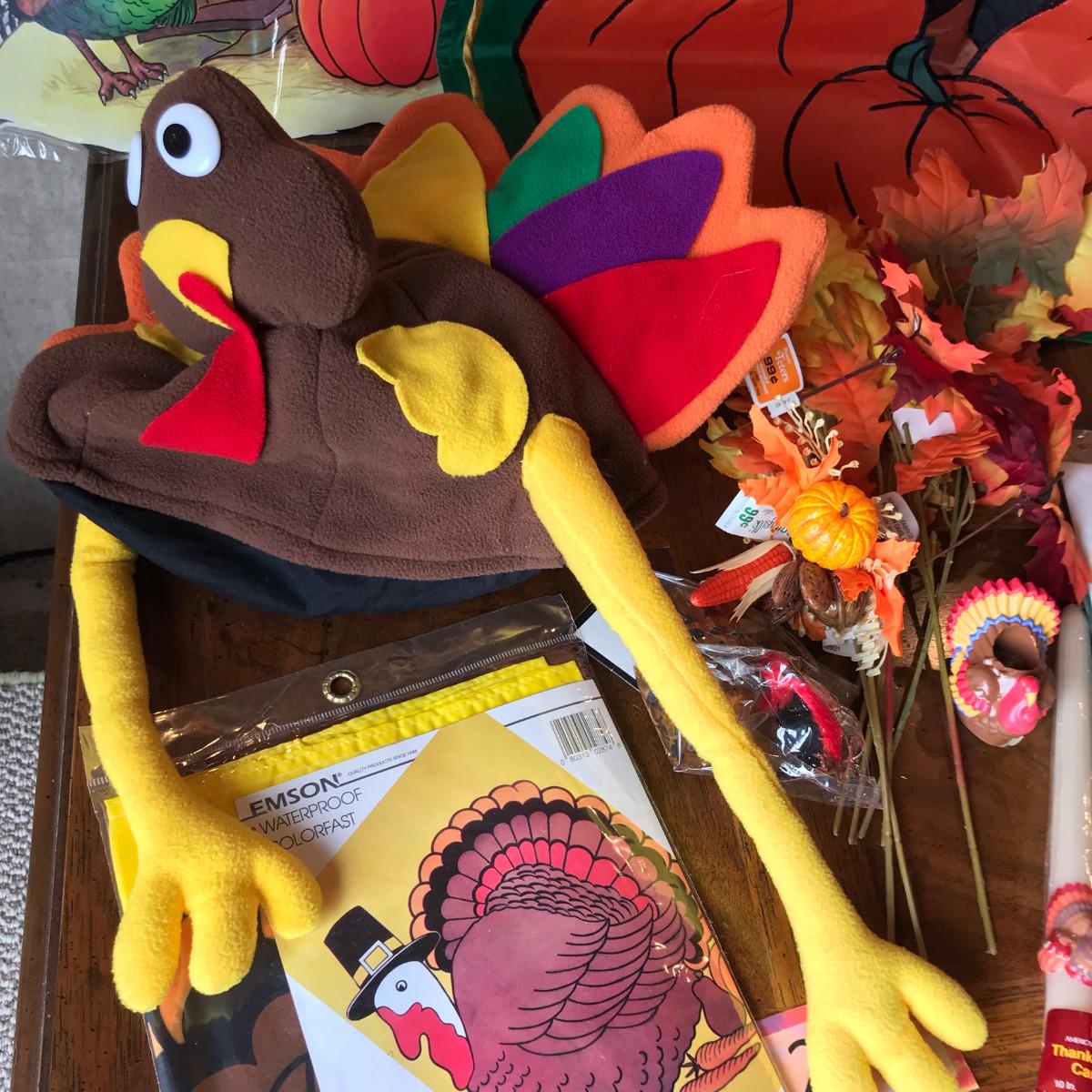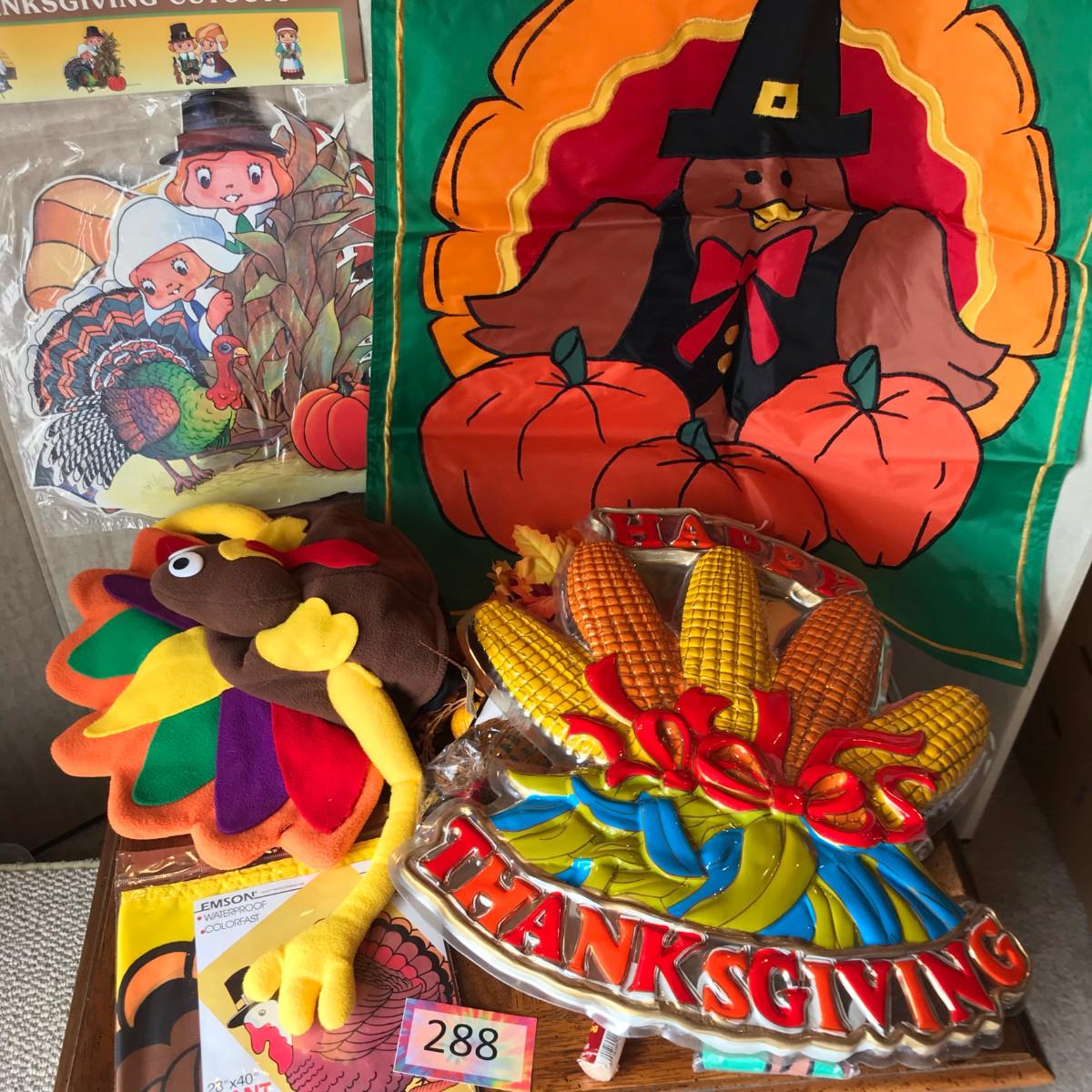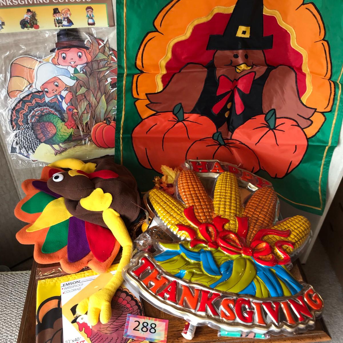 Lot of paper, plastic, and other Thanksgiving decor