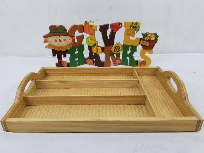 Thanksgiving Decor: Give Thanks sign, Decorative Flatware Tray