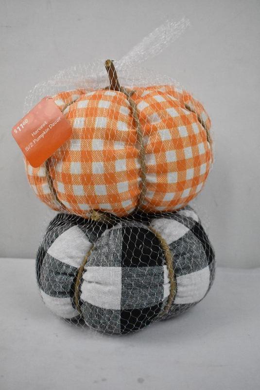 Thanksgiving Multicolor Plaid Pumpkins Decoration (8 in), Set of 2 - New