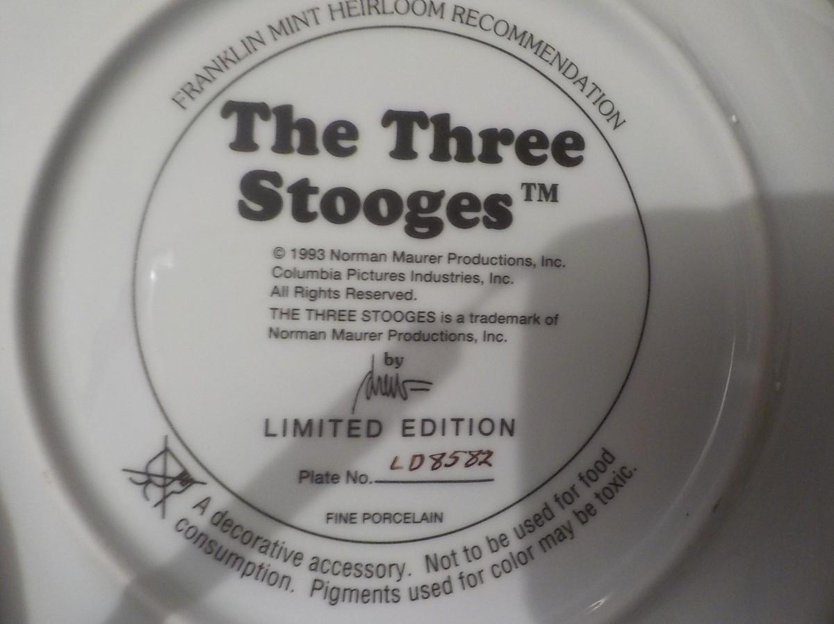 " The 3 Stooges " Franklin Mint Plate numbered.