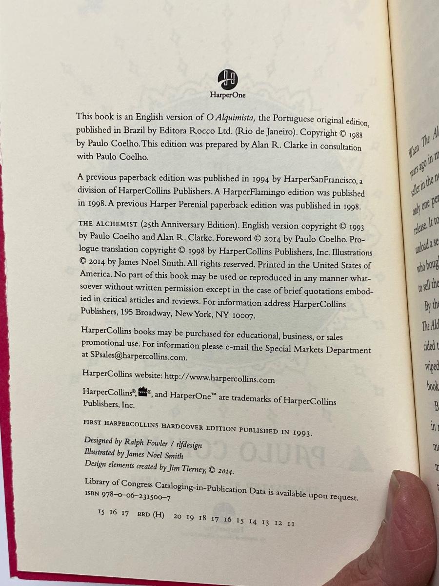 The Alchemist: A Fable of Following Your Own Dream by Paulo Coelho. 25th Anniversary edition book. Good condition. Pocket sized book.