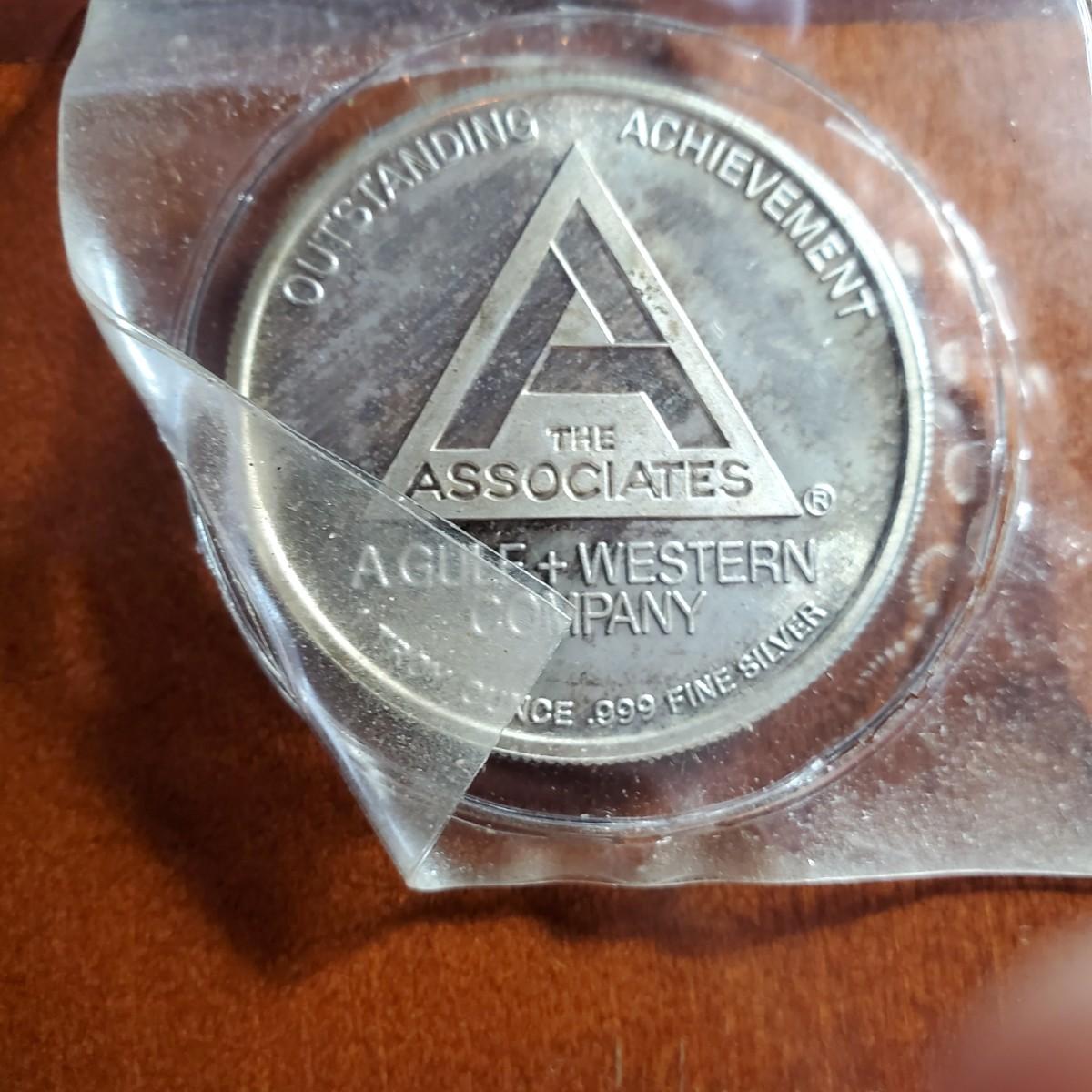.999 Silver The Associates Award. unopened 1989. Silverspot price today October 2021 is listed as $22.72