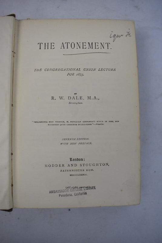 The Atonement, Hardcover Book by RW Dale, MA. Embossed Cover. Antique 1878
