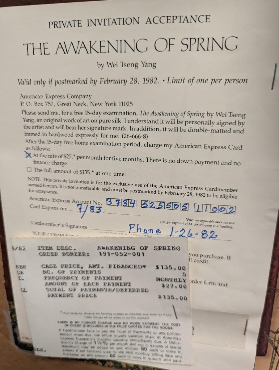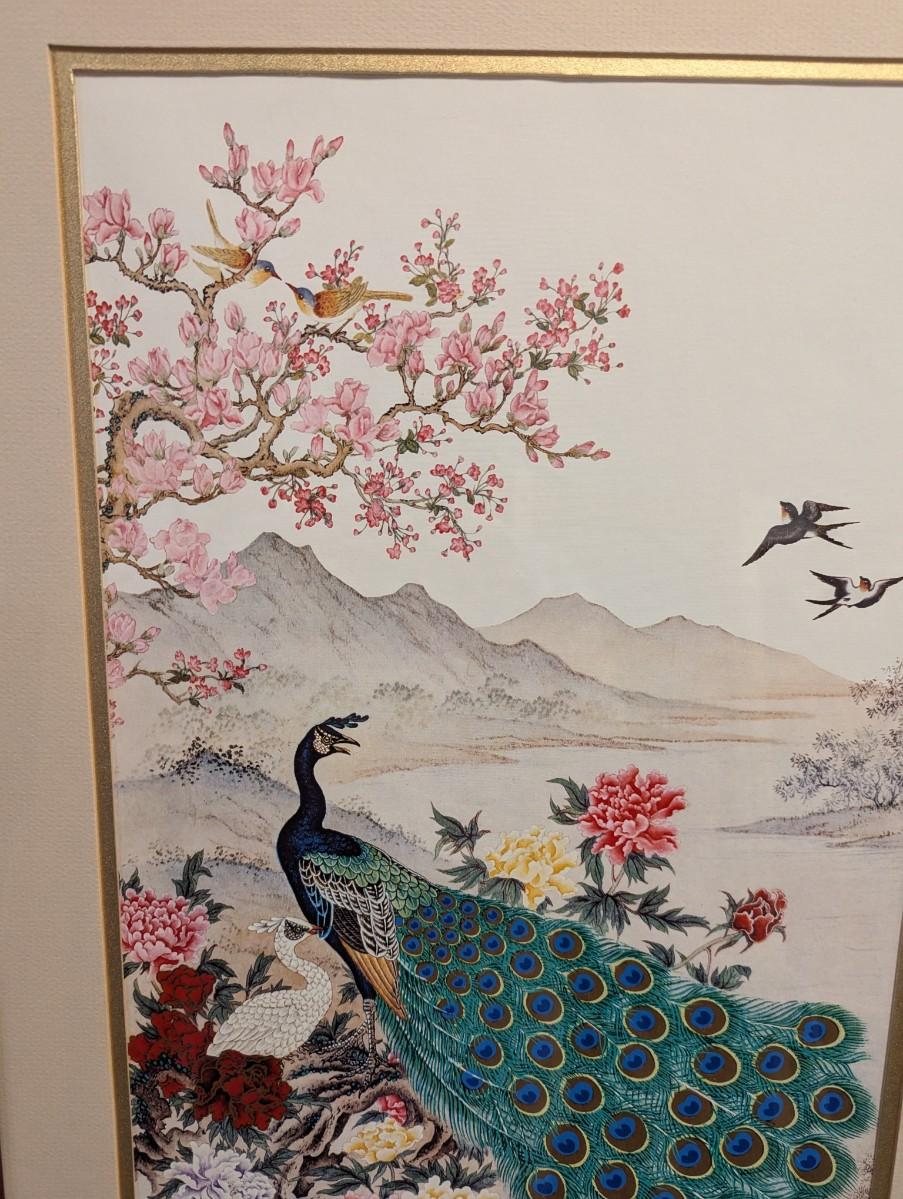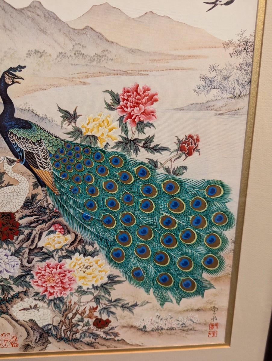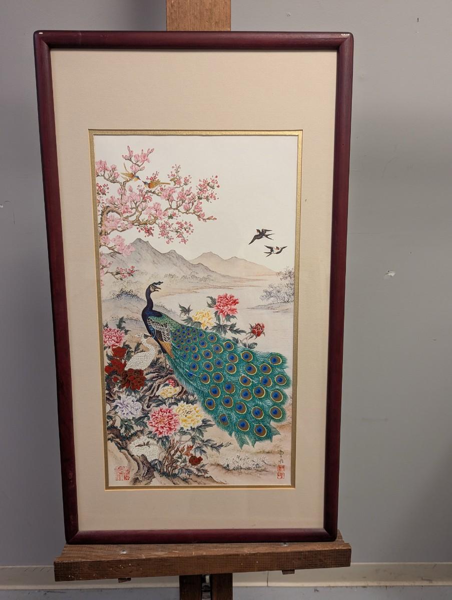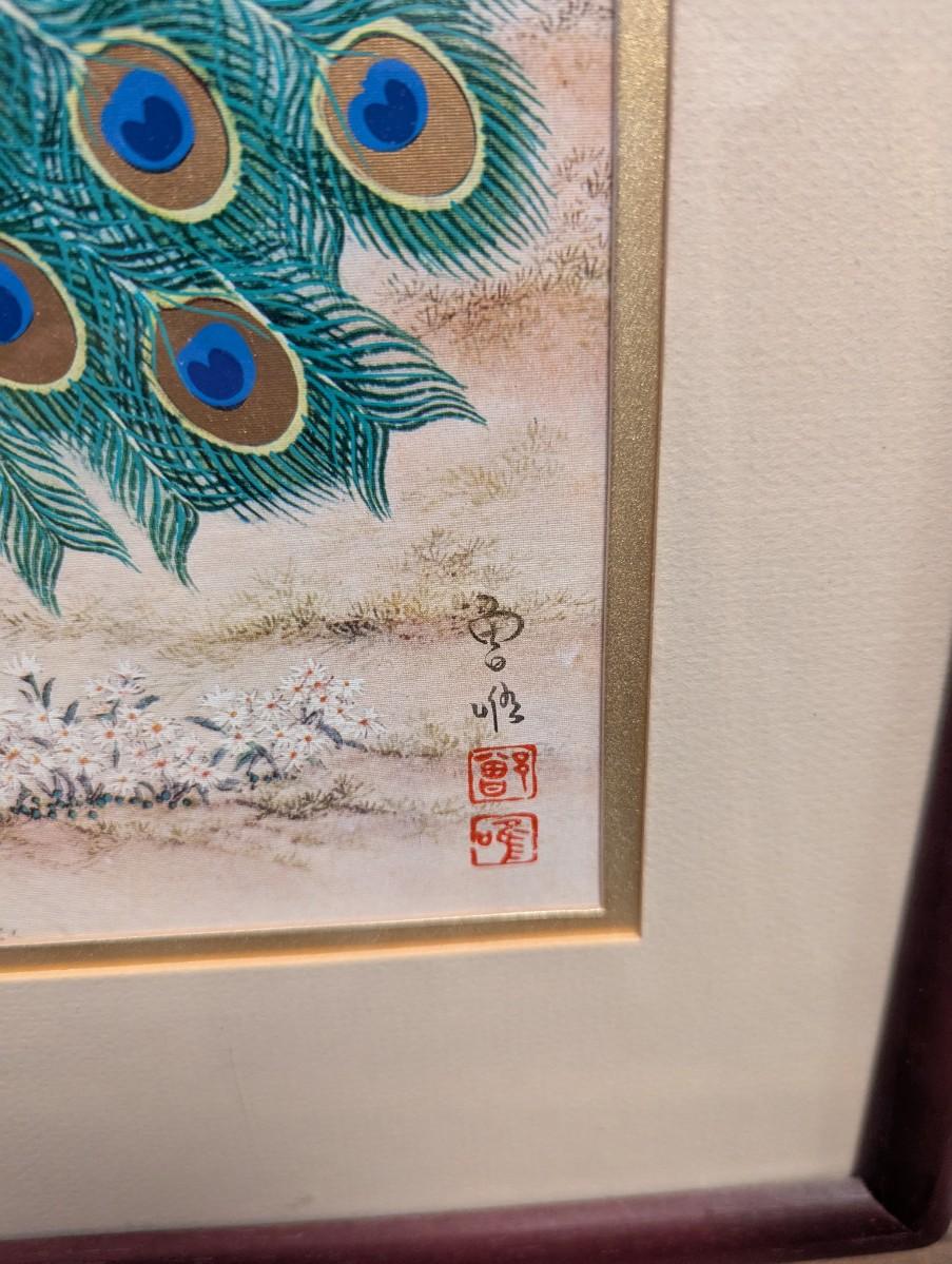 "The Awakening Of Spring" Signed Wei tseng Yang Framed Peacock Silkscreen 1980's