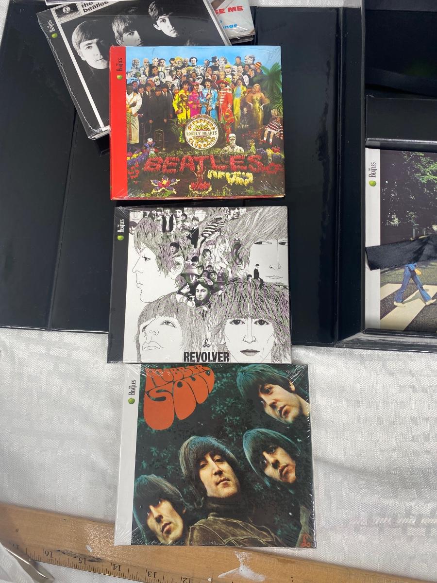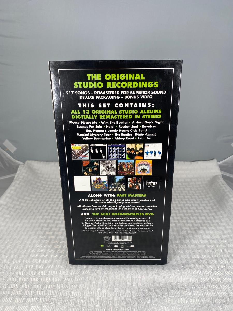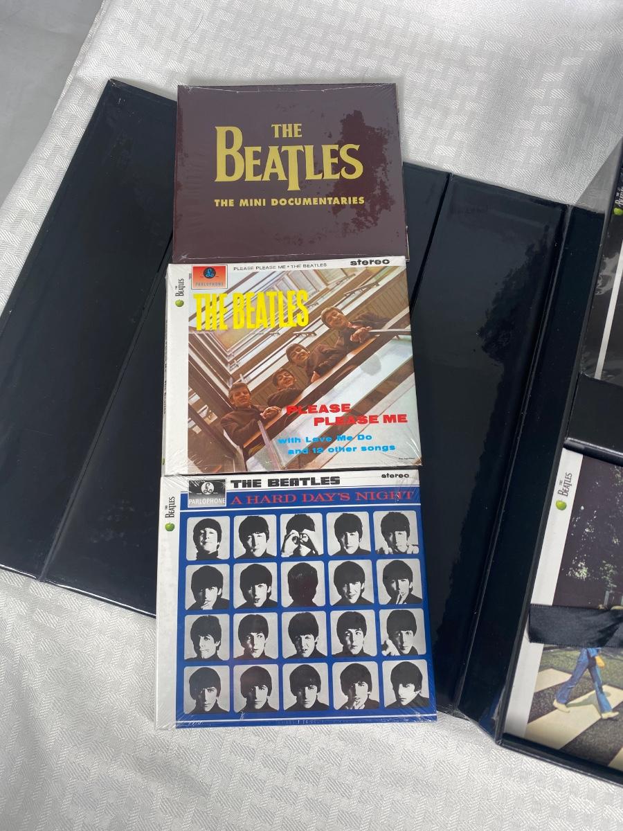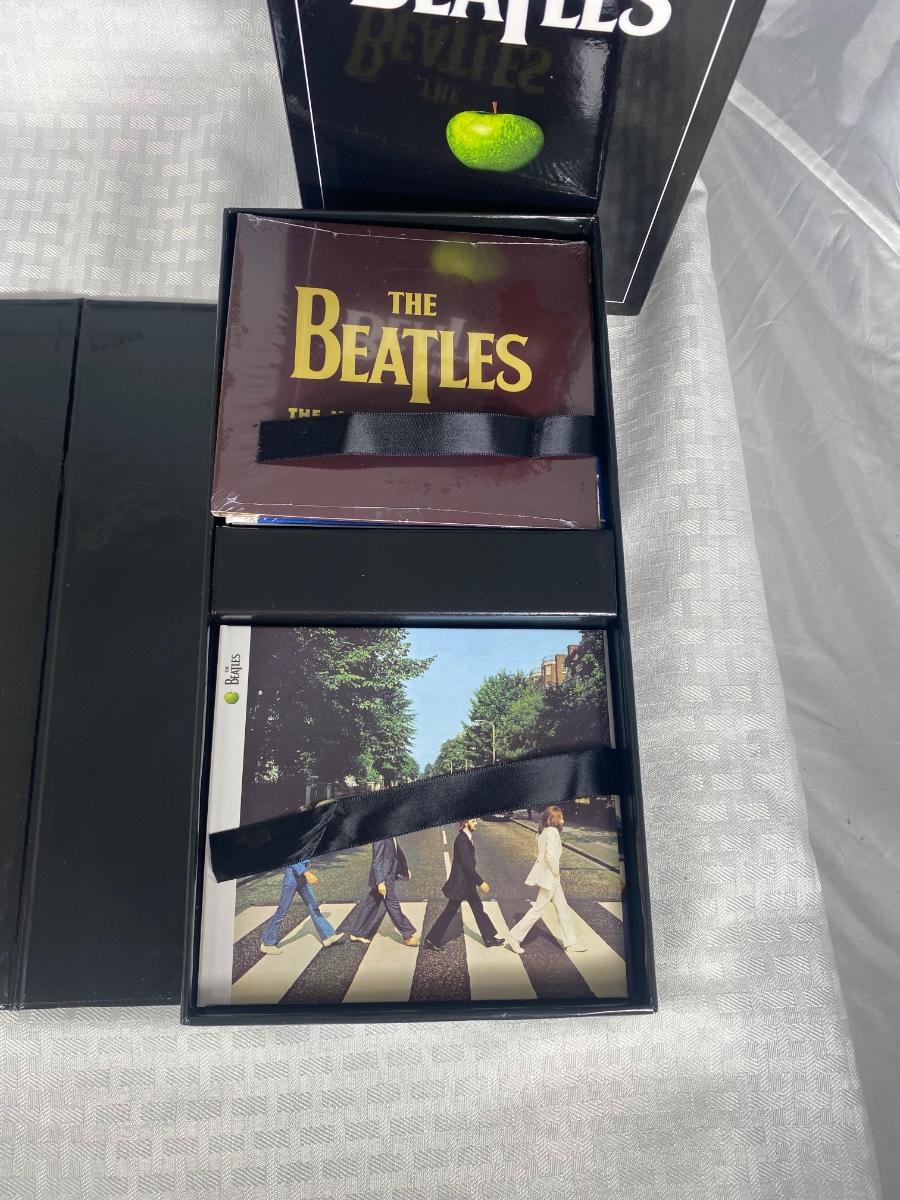 The Beatles Boxed Set Complete Deluxe Discography. Boxed set contains opened and unopened CDs, most are unopened, All their greatest hits plus a DVD documentries disc. The opened CDs are in very good condition. Set is complete, no missing discs or CD booklets.