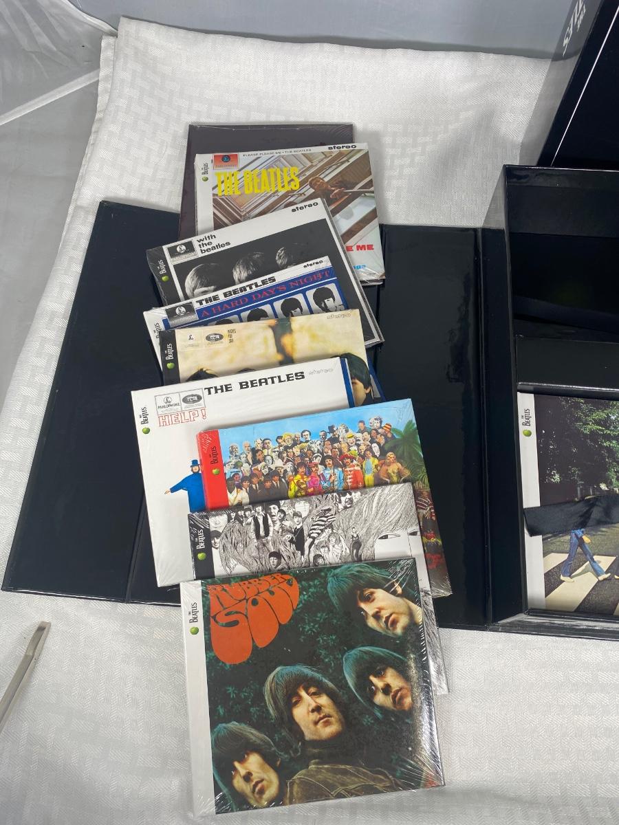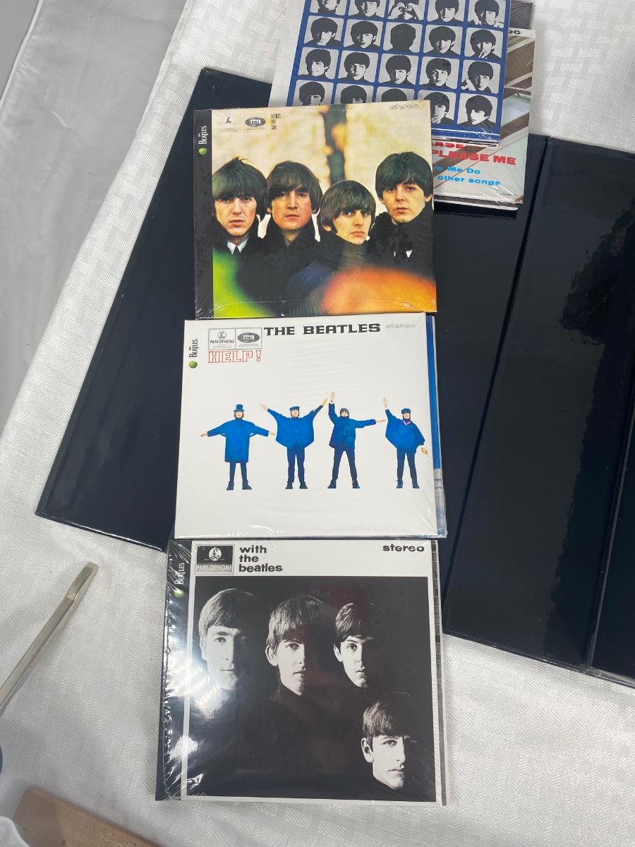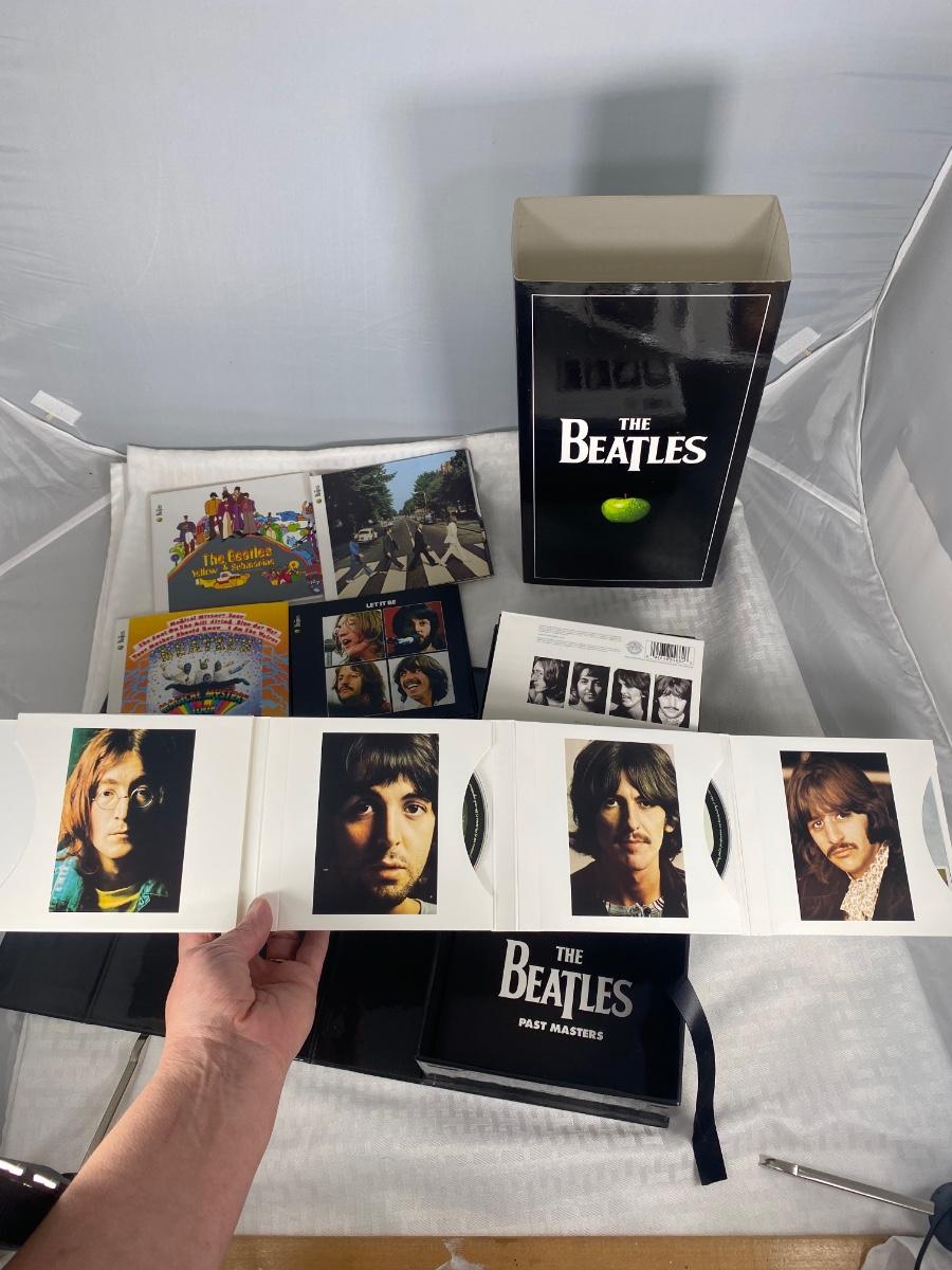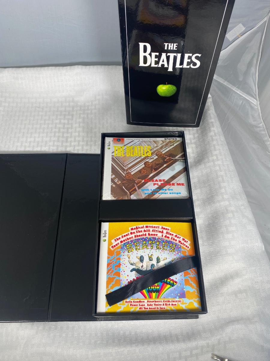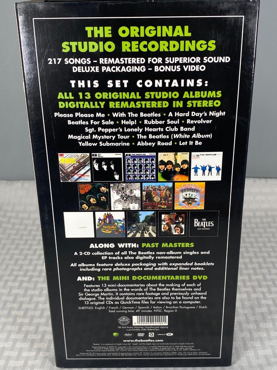 The Beatles Boxed Set Complete Deluxe Discography. Boxed set contains opened and unopened CDs, most are unopened, All their greatest hits plus a DVD documentries disc. The opened CDs are in very good condition. Set is complete, no missing discs or CD booklets.