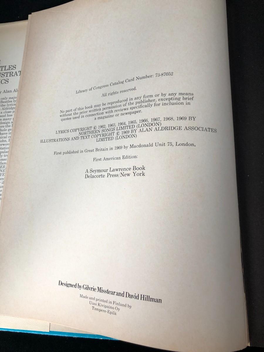 The Beatles Illustrated Lyrics Book Seymour Lawrence Delacorte Press