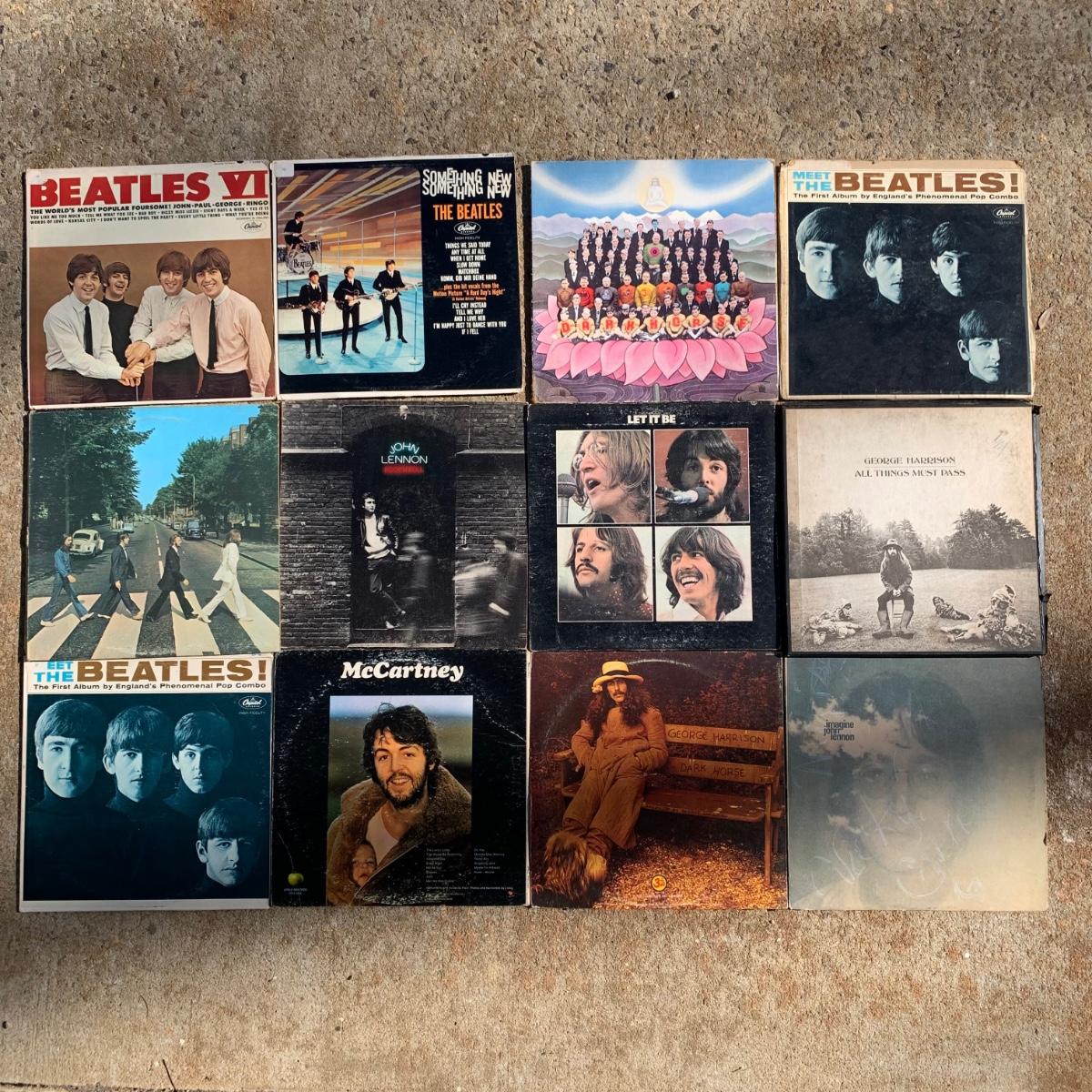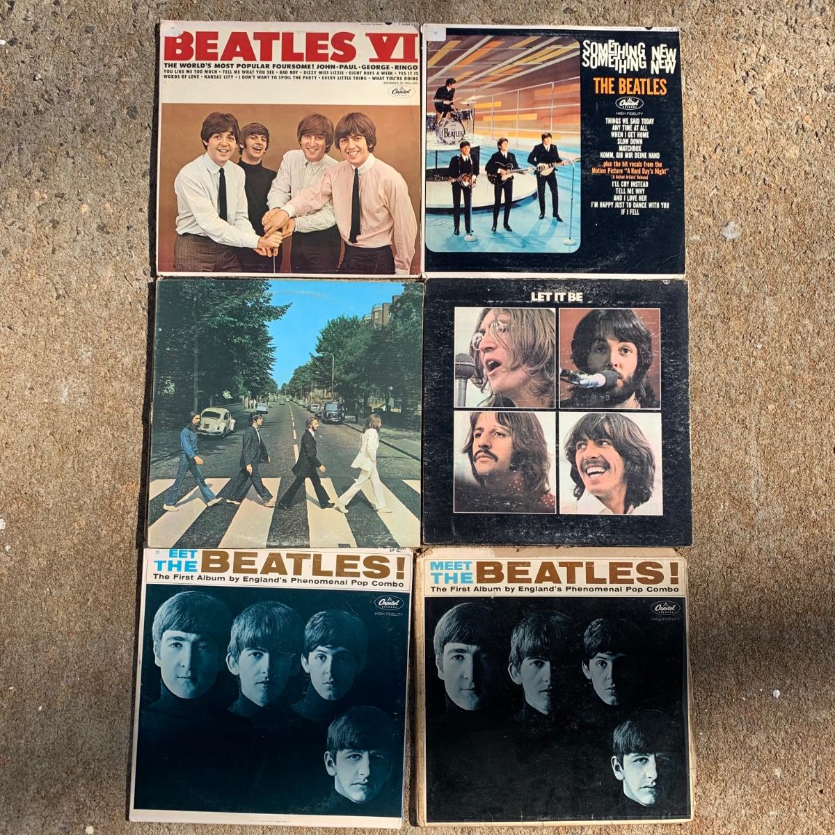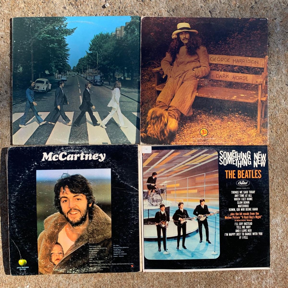 This lot includes The Beatles vinyl records, as well as albums from some of the members’ solo projects. There are five Beatles albums, including two copies of “Abbey Road”. One of the “ Meet the Beatles” album covers is empty, but the second copy does contain the record. There are also two copies of George Harrison’s “Dark Horse”. All albums are in used condition. Shipping available.